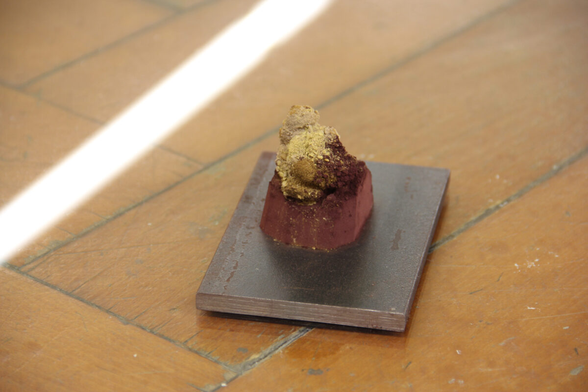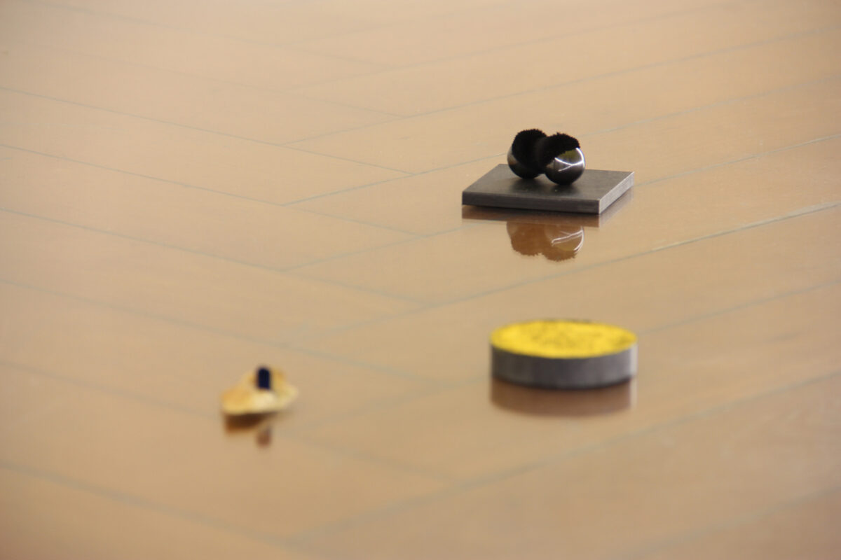 Die Rauminstallation wird zur Bühne für die kleinen Objekte. Sie zeugen von Anja Brauns Faszination für die Materialität und Leuchtkraft reiner Pigmente, die sie auf diese Weise in eine Art «reine Malerei» umsetzt. Diese Preziosen sind in unablässiger Bewegung, denn sie bestehen aus Pigment und Magnet, und deren Spannungsfeld erzeugt einen stetigen Energiefluss.