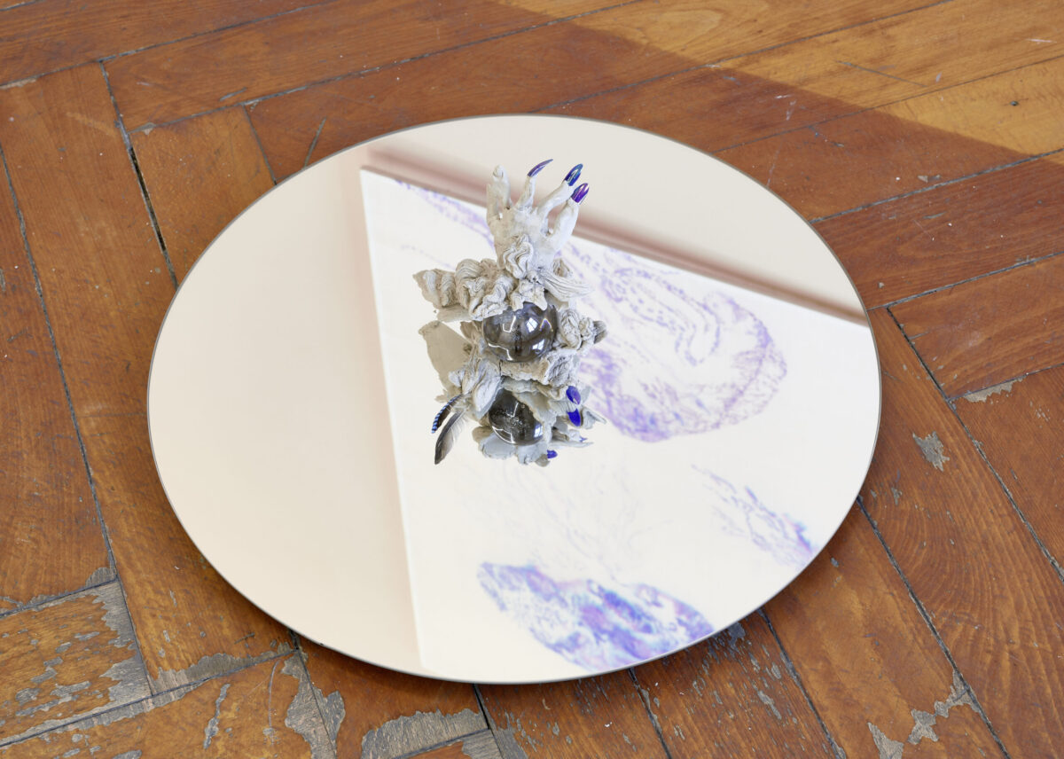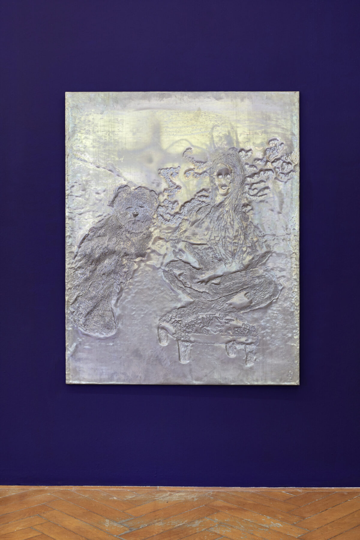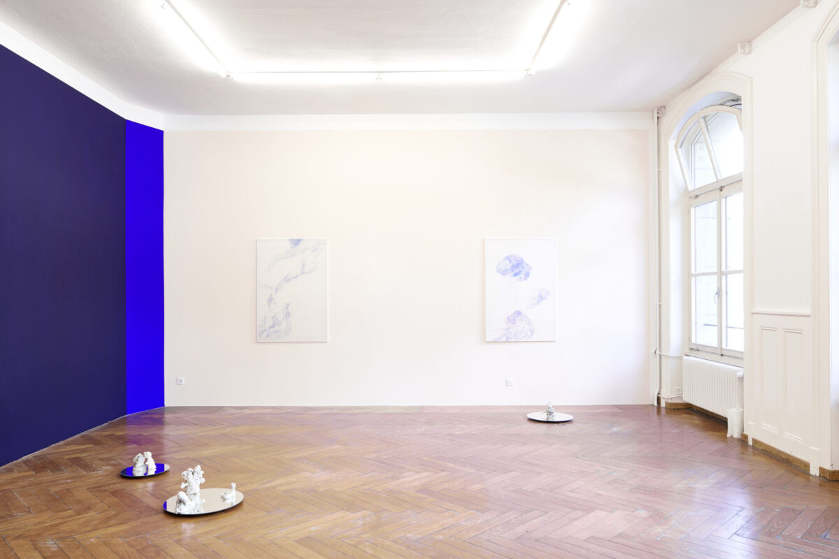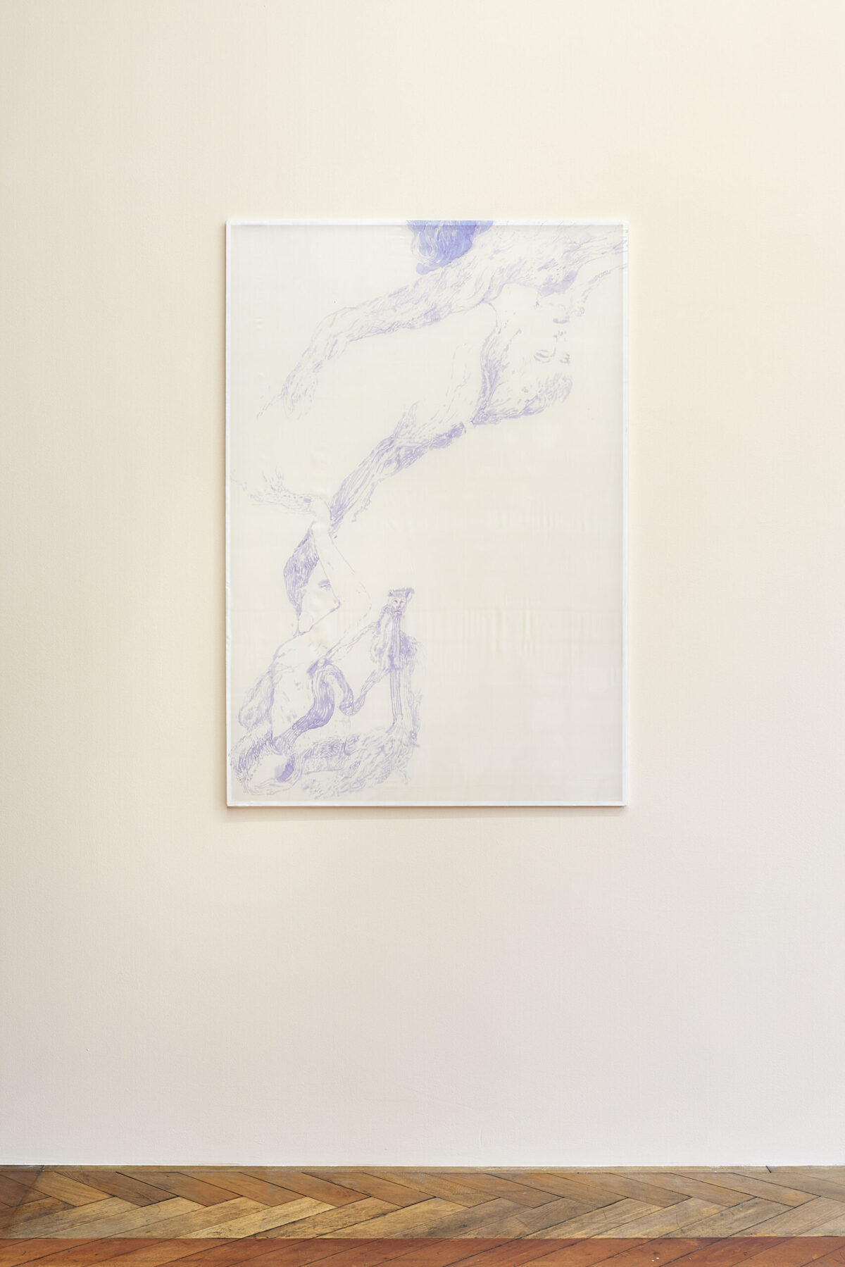 Den Arbeiten wohnen mögliche Anfänge von Geschichten inne, die sich durch die Gegenüberstellungen der Bildwelten innerhalb der Ausstellung weiterspinnen. Die Bildinhalte spielen auf eine feinstoffliche Ebene an und erzählen von geistigen Verbindungen. Immer wieder breiten sich Arme und Haare der Figuren fadenartig aus und werden zu Fühlern unmittelbarer und zukünftiger Begegnungen.