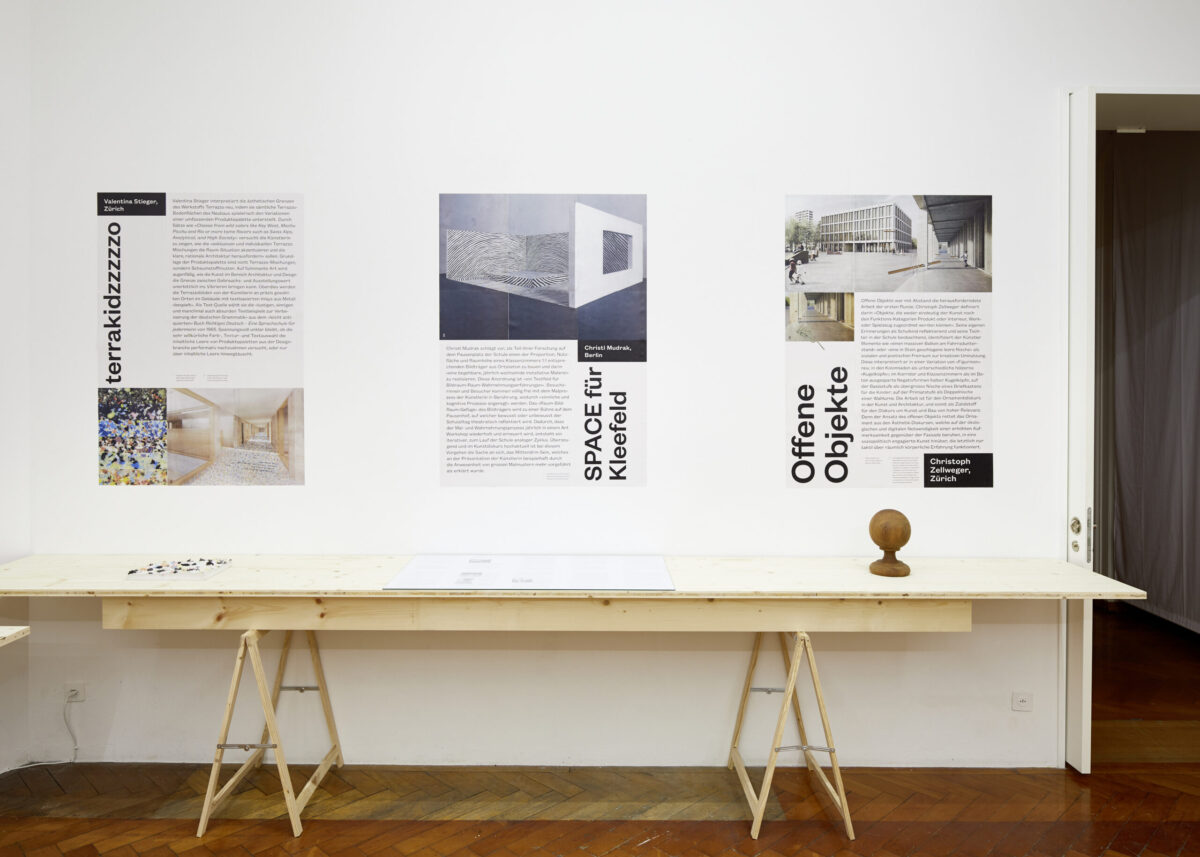 In dieser Ausstellung wird erstmals erprobt und reflektiert, welche Rolle eine öffentliche Präsentation in laufenden Auswahlverfahren für Kunst und Bau spielen kann. Der so eröffnete Diskurs wird mit Gästen und Publikum in einer dreiteiligen Gesprächsreihe zu Öffentlichkeit, Forschung und Transdisziplinarität vertieft. Kunst und Bau wird dabei als Form einer meist alltäglichen, jedoch kritischen Begegnung zwischen künstlerischer Praxis und Öffentlichkeit aufgefasst.
