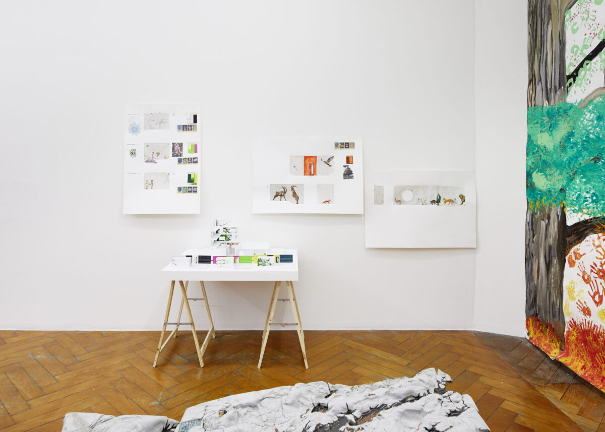 Die neun Kunst und Bau-Projekte für die Volksschule Kleefeld sind im hintersten Raum der Ausstellung anhand eines Plakats sowie einem künstlerischen Exponat nachvollziehbar. Die Plakate reflektieren die Projektvorschläge anhand von Schlüsselbildern sowie Zitaten aus den Projekteingaben der Kunstschaffenden und den Juryberichten. Gegenübergestellt werden Exponate der Kunstschaffenden: Alle stellen sie über die jeweilige künstlerische Praxis und eines Statements eine Beziehung zum vorgeschlagenen Kunst und Bau-Projekt her.