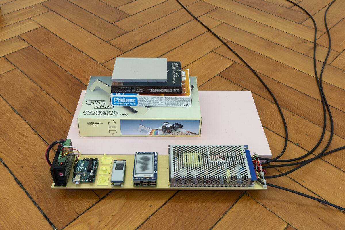 In REMO STOLLERS (*1977) Arbeiten erscheinen Bilder als Schnittstelle in die Tiefen des zweidimensionalen Bildraums, ein virtueller Raum den alle Bilder gemeinsam teilen. Der Übergang zwischen Bild- und Realraum ist gleichzeitig trivial wie wundersam. Die Arbeit Fulfillment Engine / Erfüllungsmaschine (2020) ist eine Bildmaschine die Wahrscheinliches und Unwahrscheinliches kombiniert, wie das Internet oder ein Antiquariat.