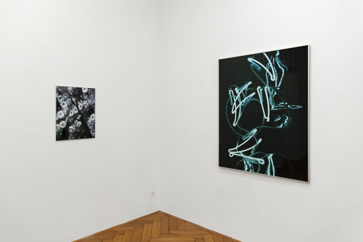 Die Bilder von ANOUK (*1994) bleiben stets informiert durch die materielle Bedingtheit des bildgebenden Verfahrens der Fotografie. Bildträger und Bildraum greifen in ihren ruhigen und doch an Informationen überreichen Bilder ineinander. Das Licht, Voraussetzung für das Abzeichnen von Bildinformation in der Fotografie, wird zur potenziellen Überreizung des Sehorgans in ihren skulpturalen Wandarbeiten Visor I und Visor II (2020). Die Visors erinnern an die Schneebrillen der Inuit und der Yupik. Der schmale Schlitz verhindert einen zu starken Lichteinfall auf das Auge und bestimmt zugleich das Sehfeld, ähnlich der Blende des Fotoapparats.