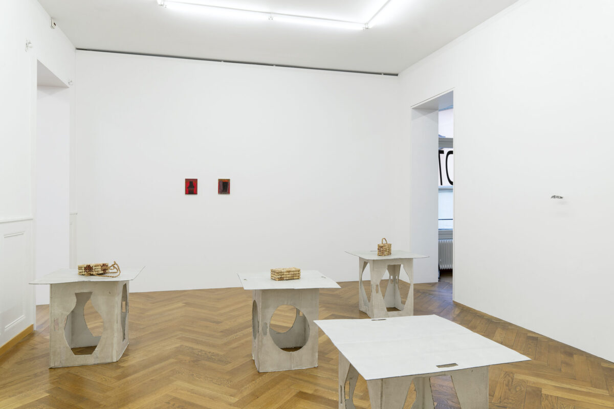 Die aus gefundenen Kartonschachteln gefertigten Portable Voids (2020) sind Teil einer wiederkehrenden Serie in der Arbeit von BEAT HUBER (*1956), innerhalb der sie ihre eigene Ökonomie entfalten: Sie können Display, Skulptur, Tisch oder Wandarbeit sein und performative Möglichkeiten eröffnen. Als Dinge die transportiert, konserviert und gelagert werden müssen, sind Kunstwerke oft träge Gegenstände. Die Portable Voids und andere Arbeiten des Künstlers koppeln sich an industriell normierte Materialien und gewinnen ihnen eine inhärente poetische Leichtigkeit ab. Sie besitzen eine situative und migrierende Ortslosigkeit und sind flüchtige Begleiter.