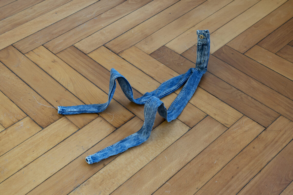 Mit Spaghetti Jeans Series: Pants for the Man on the 100 CHF Bill (2020) treibt ERNESTYNA ORLOVSKA (*1987) Körper- und Fashionkultur auf die Spitze: Schlanker und enger, bis die Kleidung nach der abstrakten Silhouette einer Alberto Giacometti-Skulptur verlangt. Der früher unverwüstliche Denimstoff, heute zu einem Inbegriff von Fast Fashion geworden, wird hier noch weiter beschleunigt. Genäht aus den Abschnitten anderer Kostümprojekte werden die Jeans zu ihren eigenen Entitäten und greifen über die menschlichen Begrenzungen hinaus in einen transhumanistischen Raum.
