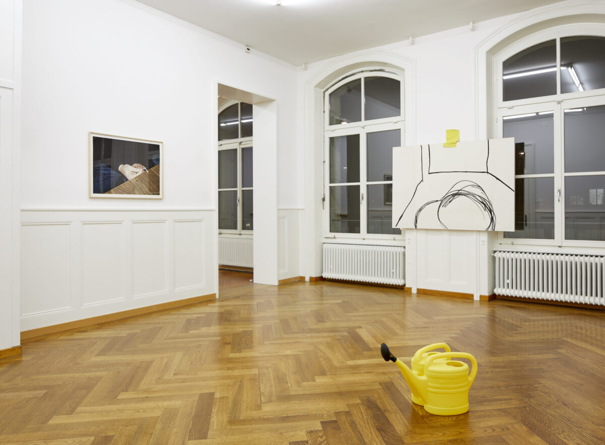 Der Werktitel der Skulptur von MARCO EBERLE (*1968 in Grabs, lebt und arbeitet in Roggwil) gleicht einer Verheissung: Optimierung (2016). Durch das Zusammenschweissen zweier Giesskannen erhöht sich das Fassvolumen, ein neues, effizienter aussehendes Objekt entsteht. Doch bei genauerem Hinsehen stellt sich heraus, dass das Objekt die Arbeit weder erleichtert noch beschleunigt, es entpuppt sich als eine Pseudo-Optimierung.