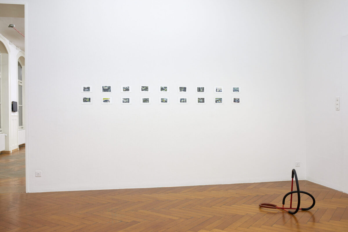 Tropikanisches Rennen ist ein Auszug der fotografischen Korrespondenz zwischen AMÉLIE BODENMANN (*1991 in Basel, lebt und arbeitet in Bern) und NICOLAS RAUFASTE (*1988 in Pompaples, lebt und arbeitet in Biel). Diese besteht aus einer sich seit Mai 2015 stetig erweiternden Sammlung digitaler Fotos von im öffentlichen oder privaten Raum gefundenen Bananenschalen. Die Kunstschaffenden halten sie jeweils mit dem Handy fest und schicken sie sich gegenseitig zu. Die Banane ist die meist verzehrte Frucht in der Schweiz. Sie ist gleichzeitig Kulturgut und Symbol für die globalisierte Welt. Der Werktitel nimmt Bezug auf die durch Monokulturen verursachte Krankheit Tropical Race 4, welche die Existenz der Frucht gefährdet. Das Sammeln der Schalen bedingt aufmerksames Bewegen im Raum und hält die bedrohte Frucht fotografisch für die Zukunft fest.