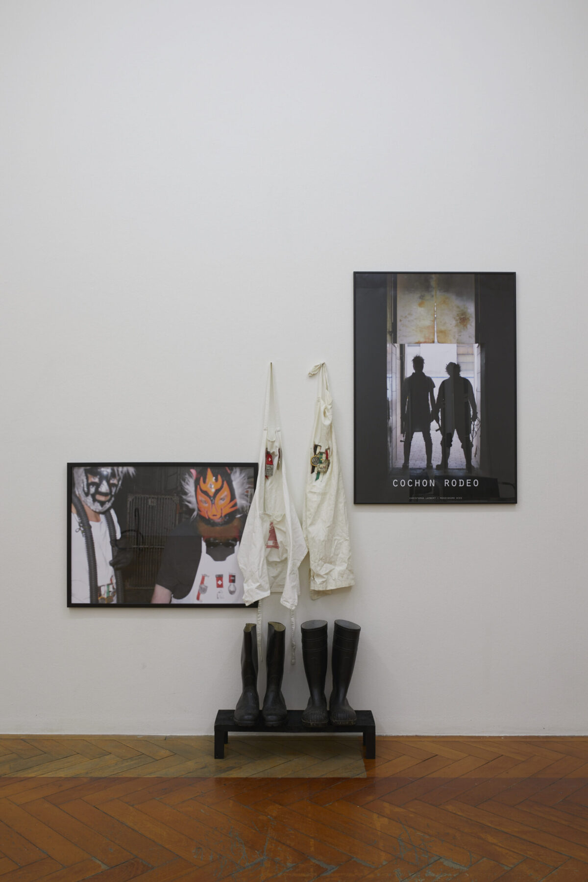 Cochon Rodeo ist ein kulinarisches Projekt der beiden Künstler CHRISTOPHE LAMBERT (*1970 in La Chaux-de- Fonds, lebt und arbeitet in Villeret) und MONSIGNORE DIES (*1969 in Lengnau, lebt und arbeitet in Biel), das sich rund um die essbaren Teile des Schweins dreht. Seit 2015 realisieren sie an unterschiedlichen Orten temporäre Restaurants, in denen sie unterschiedliche Teile des Schweins als Mahlzeit servieren. Um ihr Projekt bewerben zu können entstand im ehemaligen Schlachthof von La Chaux-de-Fonds eine erste Fotoserie. Diese sowie Überreste der temporären Gaststätten sind in der Arbeit Cochon Rodeo – Print Cabinet (2016) versammelt und hinterlassen Spuren der vergangenen Ereignisse.