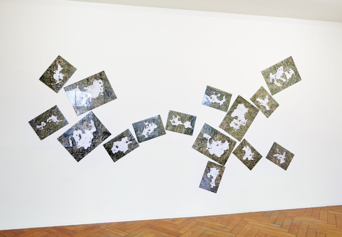 In der 15-teiligen Serie Sinking Islands (2015) hat NICO MÜLLER (*1983 in Balsthal, lebt und arbeitet in Bern) schmelzende Schneereste fotografisch festgehalten. Das Sujet erscheint vertraut und beinahe banal. Durch die Aufnahme in der Vogelperspektive und die Wiederholung des Motivs weitet sich der Blickwinkel bei der Betrachtung von der Mikro- zu einer Makroebene. Die Formen des schmelzenden Schnees werden zu Inseln im Ozean. Der Titel der Arbeit verstärkt diese Assoziation und bringt mit dem Verb «sinking» die Themen der Erderwärmung und Klimaveränderung ins Spiel. Gemeinsam ist den Schneeresten und den imaginierten Inseln, dass sie beide, über kurz oder lang durch die Wärme der Sonne verschwinden werden.