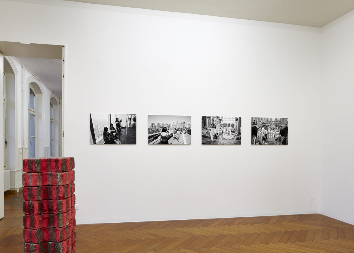 In seiner Serie My mobile phone (2015) fotografiert JOST VON ALLMEN (*1963 in Unterseen, lebt und arbeitet in Unterseen) Leute, die gerade von sich selbst oder einer dritten Person vor grossstädtischen Wahrzeichen fotografiert werden. Das Touristenfoto mit Selbstdarstellungspotential unter dem Motto «I was here» erlebt durch die sozialen Medien weltweit eine exzessive Verbreitung. Von Allmen zeigt in seiner Serie das Paradox dieser Bilder auf: Trotz der exakten Lokalisierung einer Person in diesem Moment sind die Fotos austauschbar und verlieren ihre Einzigartigkeit. Von Allmen benutzte für diese Serie bewusst eine digitale Leica-Kamera, die nur schwarz-weisse Bilder liefert und sich somit an die Tradition der historischen Strassenfotografie anlehnt.