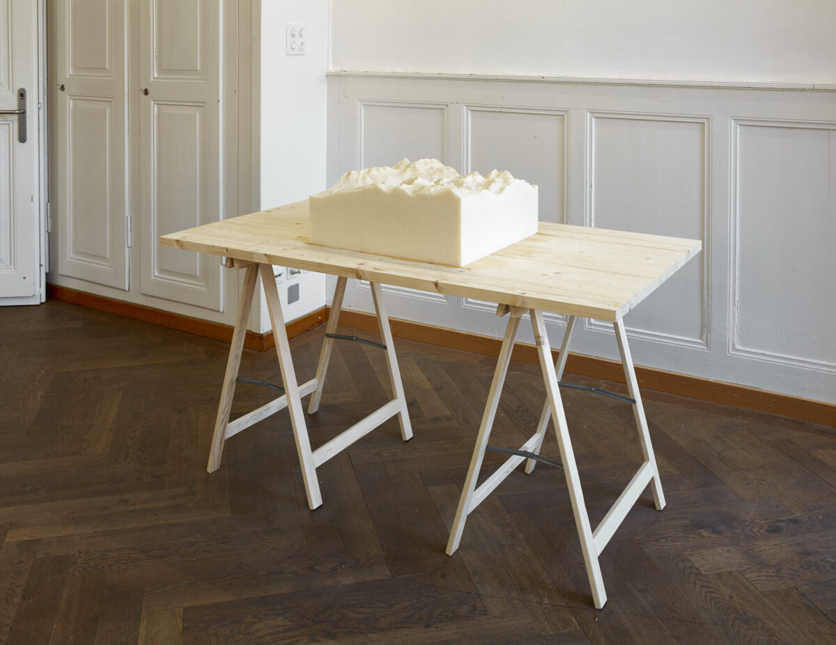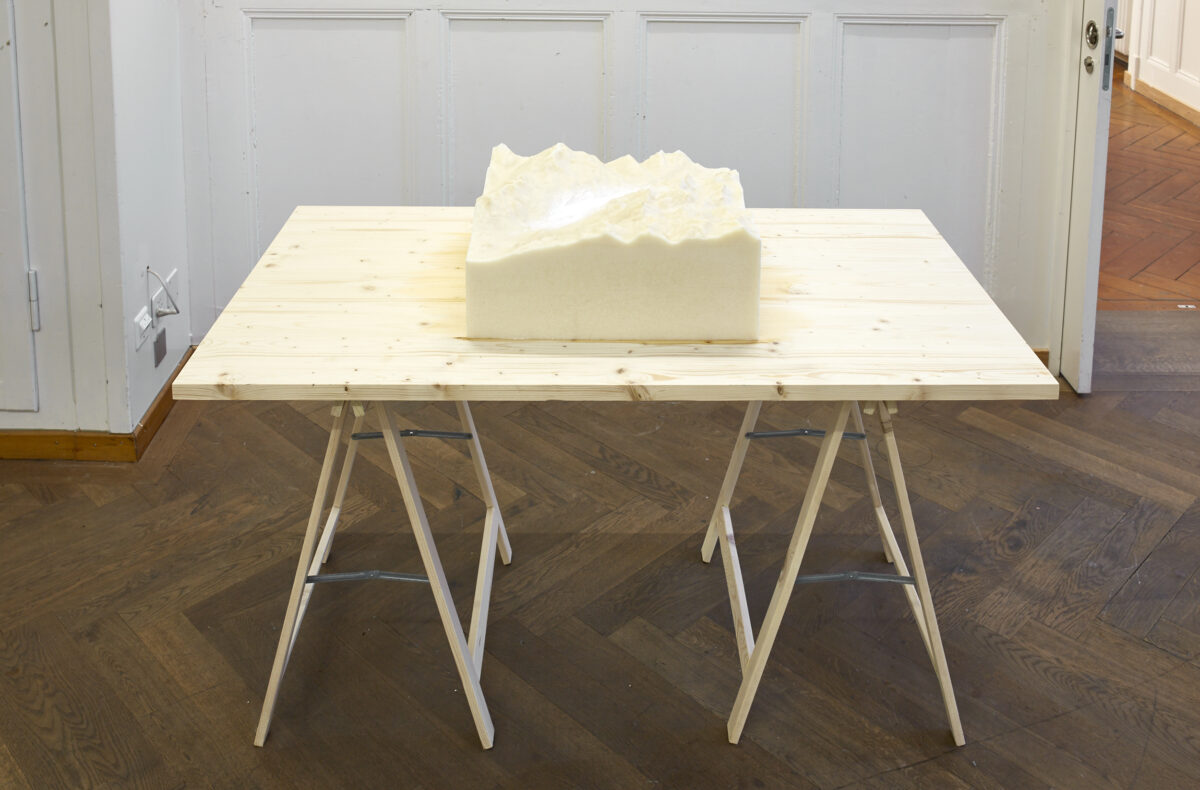 Die Zwillingsschwestern NATHALIE UND CELIA SIDLER (*1983 in Sarnen, leben und arbeiten in Basel) beschäftigen sich in ihrer künstlerischen Arbeit mit unserem Umgang mit Lebensmitteln. Das Relief der Region um St. Moritz im Massstab 1:20‘000 ist aus Fettstoff geformt. Während der Ausstellungszeit verändert sich das Objekt durch die vorherrschende Temperatur. Das Material sowie der abgebildete Ort werden zu Metaphern von Überfluss, Reichtum und der damit verbundenen Ausbeutung natürlicher Ressourcen.