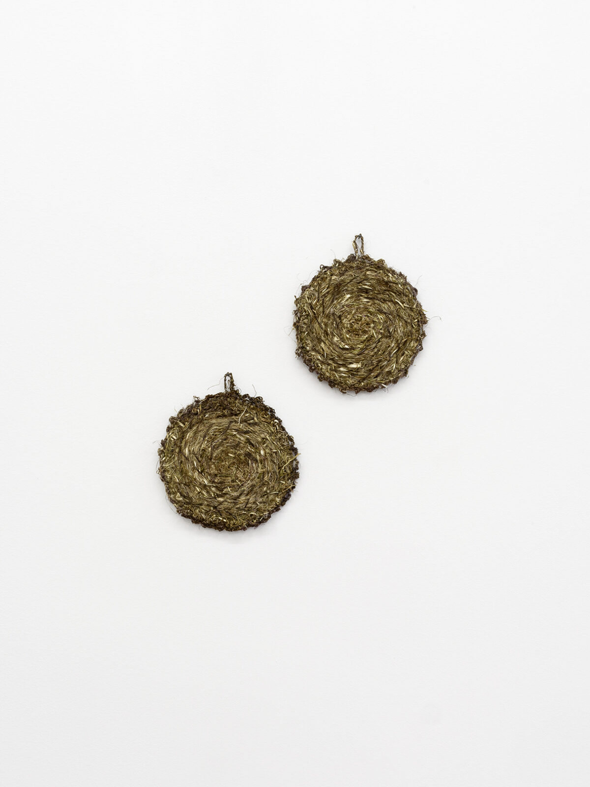 Die Arbeit Hotspot (2021) besteht aus einem Paar Topflappen, die aus den Fasern der Brennnessel gefertigt wurden. In aufwändiger Handarbeit trennte die Künstlerin CHRISTINE HURST die Fasern der hautreizenden Pflanze vom Holz und verwebte und umhäkelte diese zu Topflappen unterschiedlicher Form. Die Objekte der Serie Hotspot erzählen gleichzeitig von Schutz wie auch von vergangener und potenzieller Verletzung.