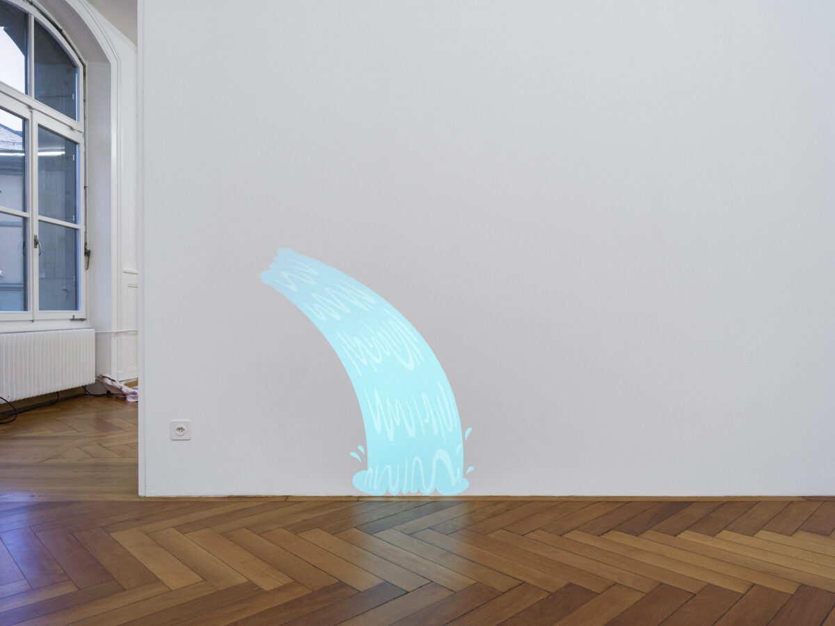 Drei räumlich angeordnete Diaprojektoren strahlen das bewegte Lichtbild eines Wasserfalles an die Wand. Obwohl die Animation nur aus zwei Phasen besteht, scheint das Wasser in ständigem Fluss zu sein. Der einfache Trick stammt aus einem Schweizer Lehrbuch der 1970er Jahren zur amerikanischen Zeichentrickfilm-Praxis. REMO STOLLER hat die Animation mit einem umständlichen Gerät umgesetzt; über Umwege und Beschränkungen, gerade so, als wäre das gängige Medium des Films so (noch) gar nicht erfunden worden, als wäre der erste Zauber des bewegten Bildes (noch) überhaupt nicht verblasst.