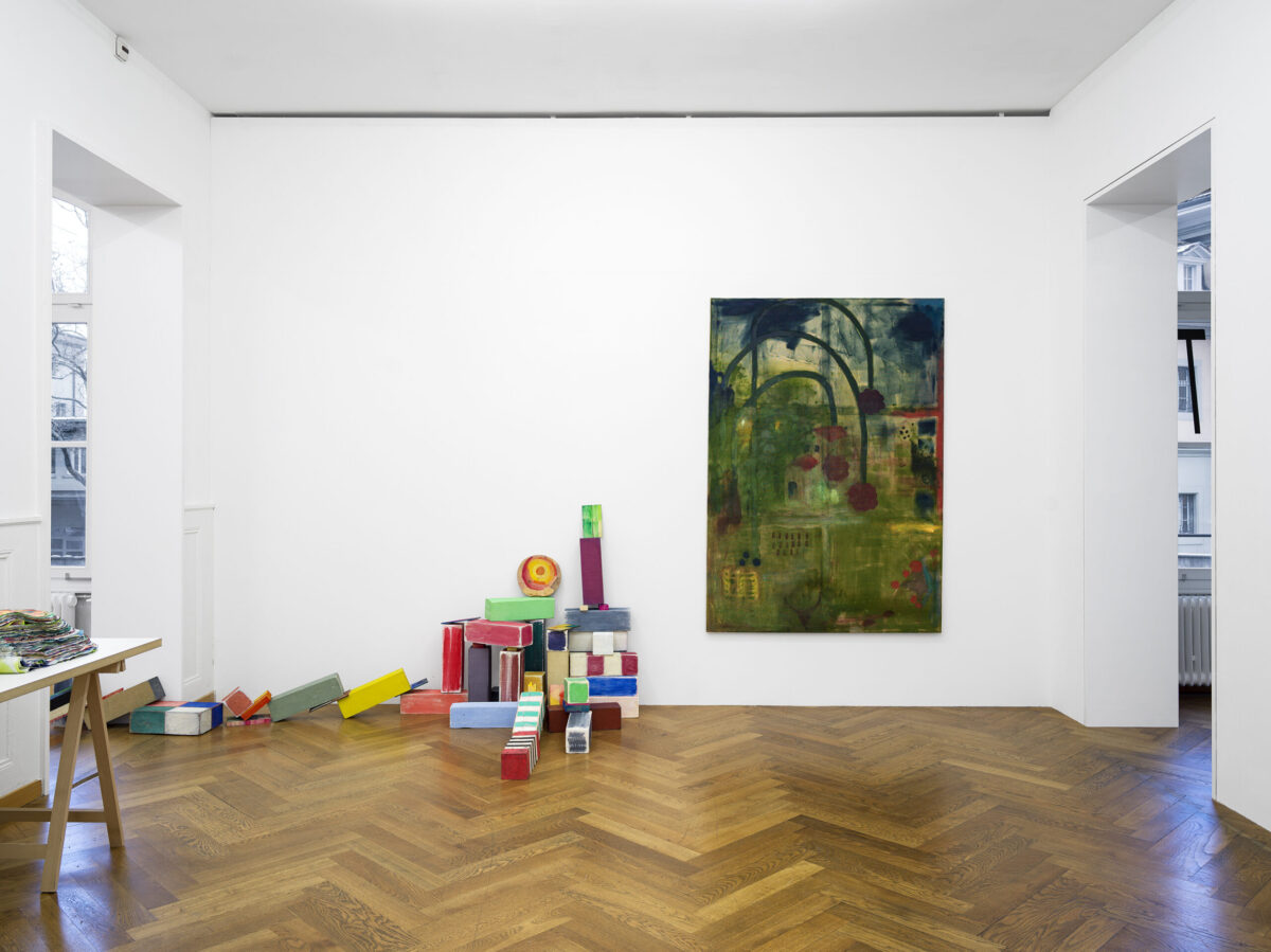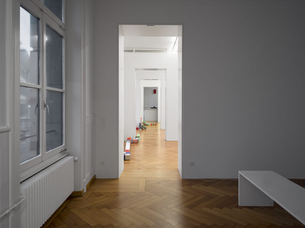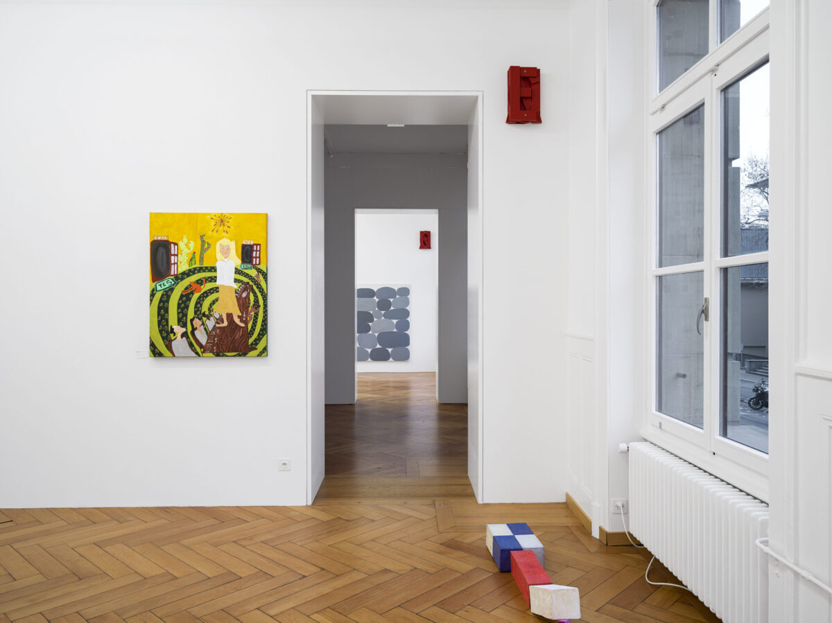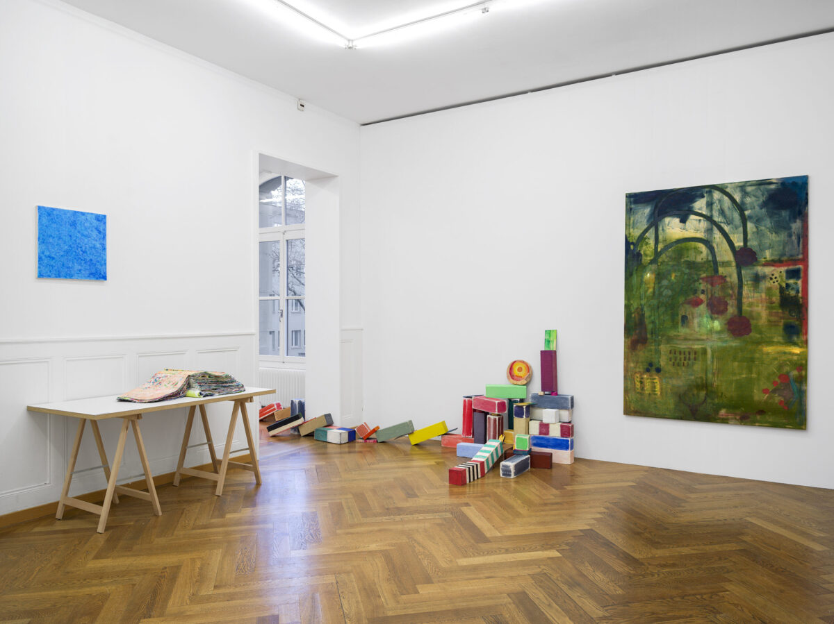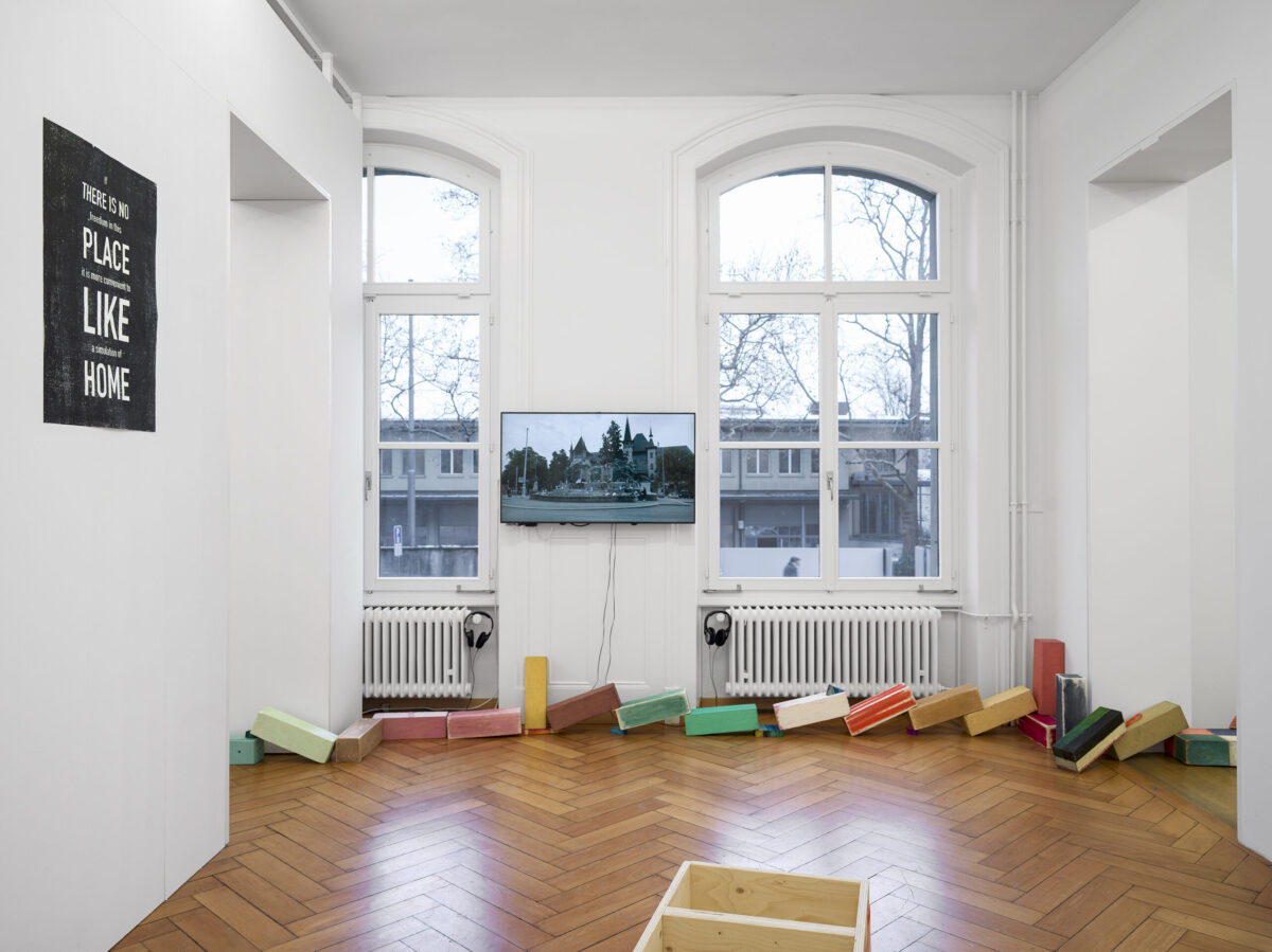 Für ihre Arbeit Heim / Werro (2021) eignet sich PIA HEIM die Tütschis des Berner Künstlers Roland Werro (1926–2018) an. Die Tütschis sind bemalte Holzquader, die Werro ab 1986 als Wandobjekte fertigte. Pia Heim realisierte mit den Quadern 2021 temporäre Anordnungen im öffentlichen Raum der Stadt Bern, die Fragen nach Autor:innenschaft und dem Umgang mit Nachlässen aufwerfen und an Wertkriterien rütteln. In der Stadtgalerie zeigt sie eine Neuanordnung der Quader und die Dokumentation ihrer temporär realisierten «Versammlungsorte».