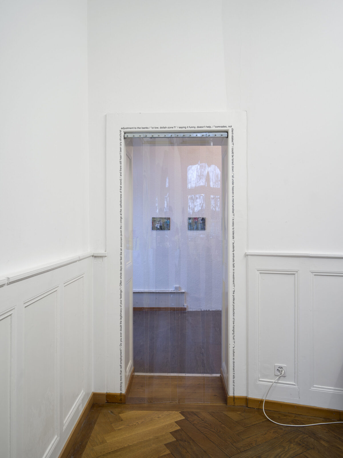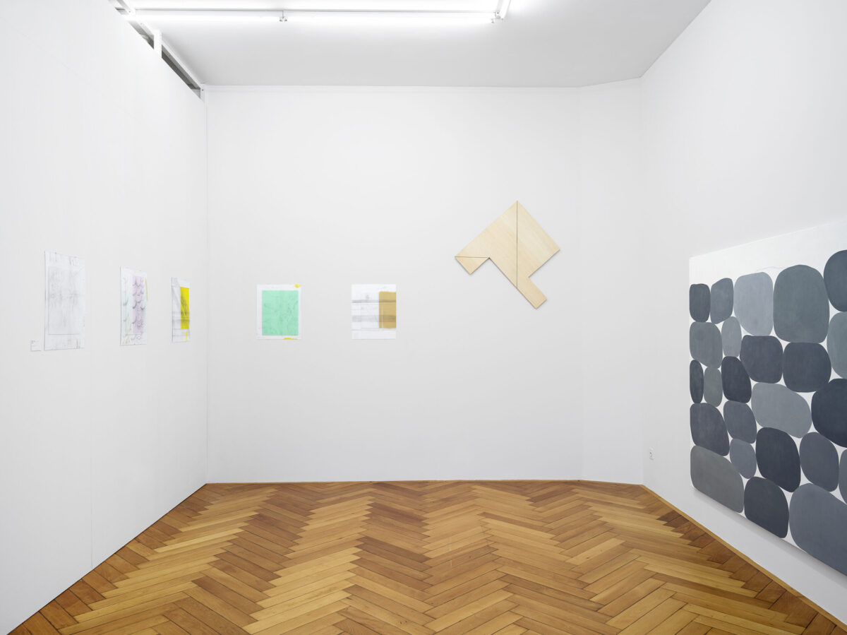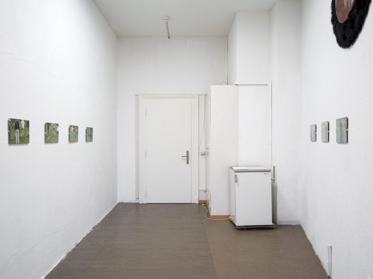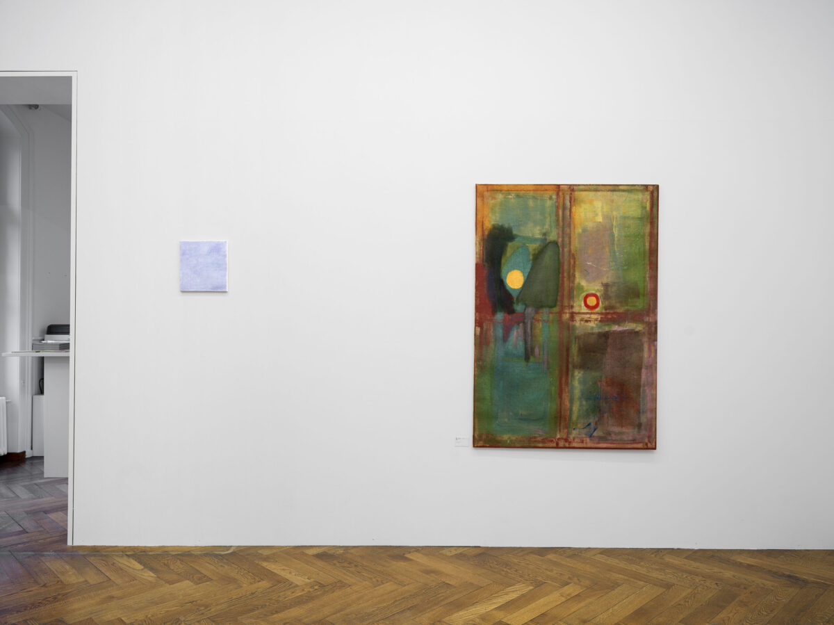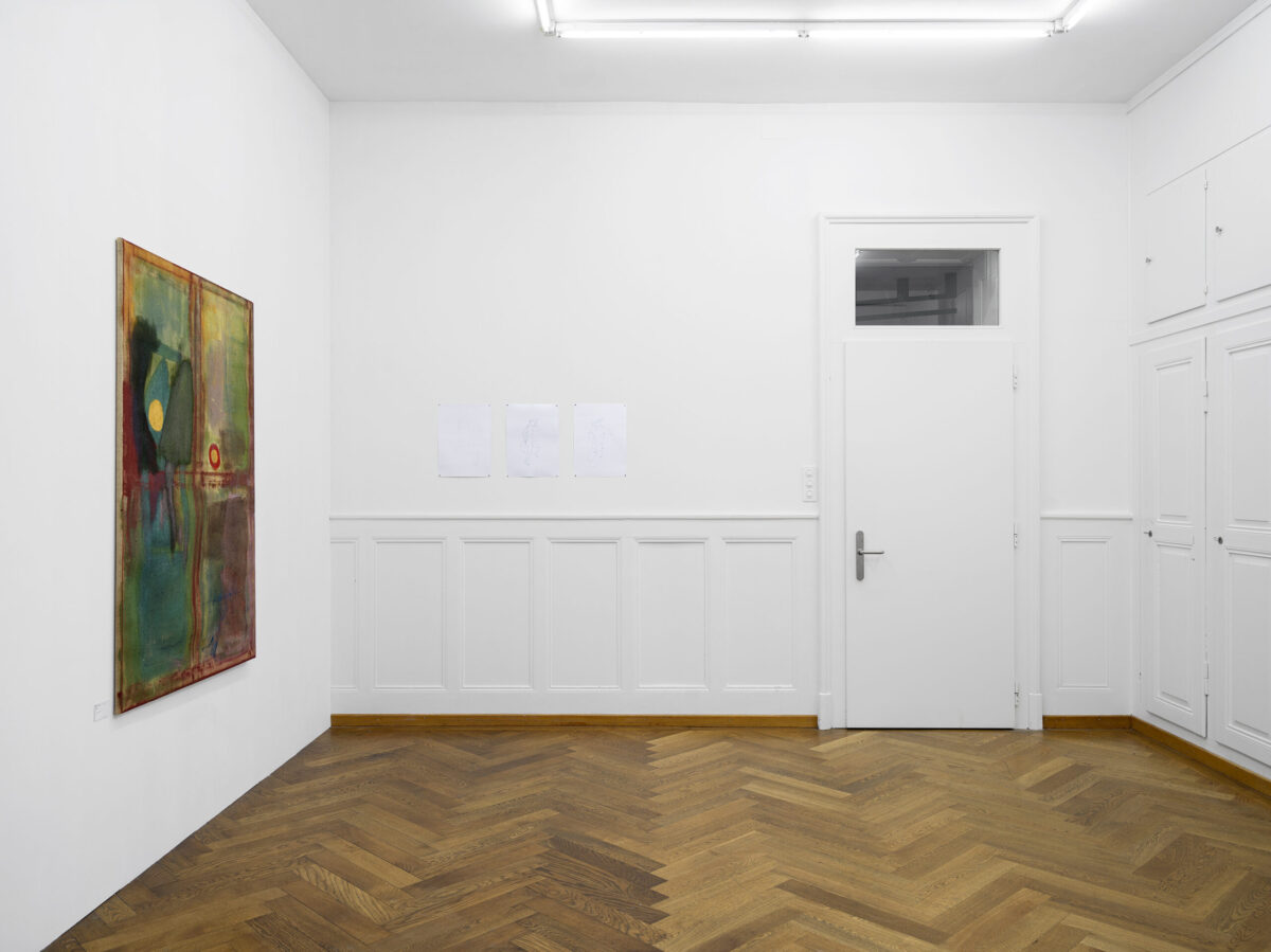 JAN VAN OORDTs (*1980, lebt und arbeitet in Saint-Imier) Praxis entfaltet sich im Eingebettetsein in spezifische Strukturen und geteilte Lebensräume. Sie situiert sich innerhalb von Beziehungen und Interdependenzen als Dialog, Einbettung oder Erweiterung. Seit 2018 betreibt er die Künstler:innen-Residenz La Dépendance in Saint-Imier, die für den Künstler zum spezifischen Ort der Reflexion und künstlerischen (Ko-)Produktion wurde. Die Malereien Umwelt (2022) und Days (2022) thematisieren durch den Abdruck des Keilrahmens ihre eigene materielle Bedingung und verweisen dadurch auf die Konstruktion von Landschaft.