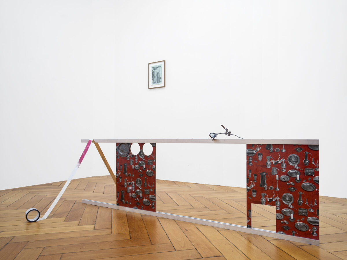 Blei ist ein wiederkehrendes Material in der Praxis von SELINA LUTZ (*1979, lebt und arbeitet in Bern), die Malerei, Skulptur und Installation umfasst. Wer war noch nie in einem alten, leerstehenden Einfamilienhaus der 1950er bis 1980er Jahre? Es sind Orte der Anti-Nostalgie. Träume, Ideologien und Lebensmodelle von Generationen sind darin konfrontiert mit einer viel zu realen Schicht aus Staub und Verwitterung. Vielleicht wurden Materialien verbaut, die als innovativ galten, die potenziell unsere Körper versehren. Die Arbeit Merry Widow Fizz (2022) von Selina Lutz konfrontiert Nostalgie mit einem materiellen Nachdruck, nicht zuletzt durch ihre Verwendung des giftigen Schwermetalls Blei.