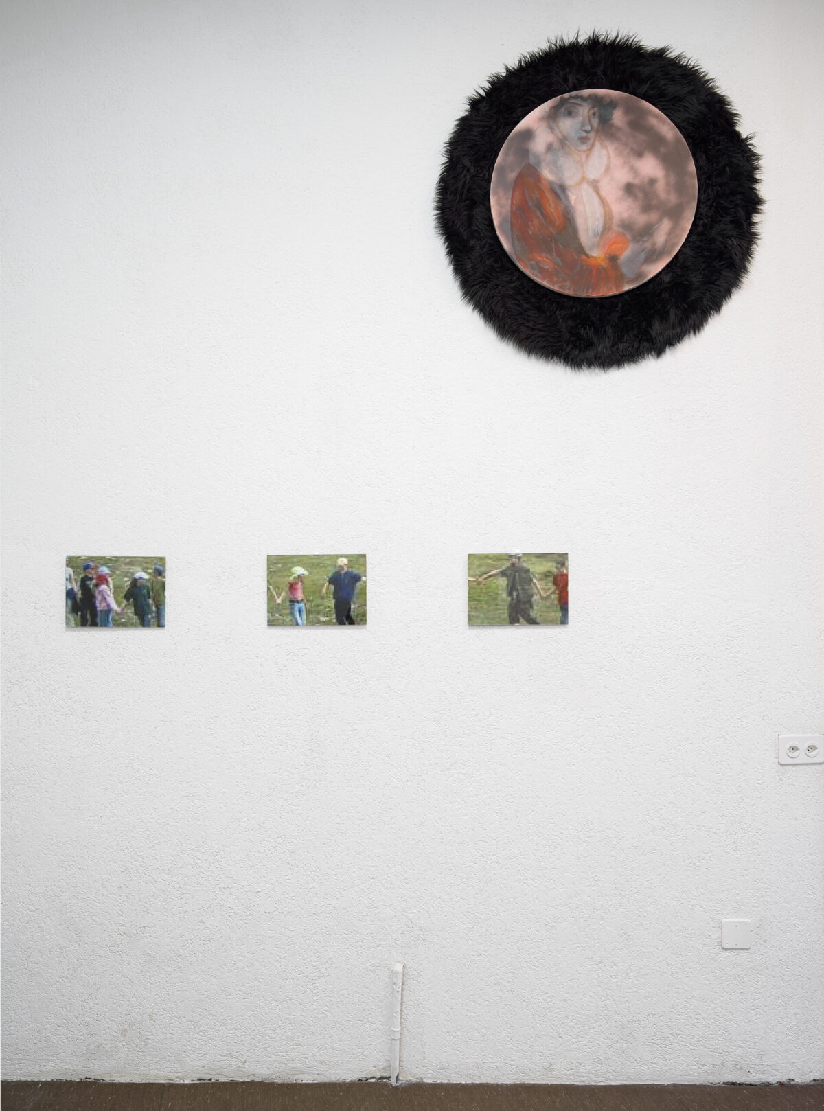 Die künstlerische Praxis von SANDRA STEINER-STRÜTT (*1967, lebt und arbeitet in Courrendlin) umfasst Malerei, Soundinstallationen, Video, Poesie und Performance. Die Künstlerin arbeitet oft mit Aneignung von Fremdmaterial, das sie, integriert in multimedialen Installationen und Inszenierungen, in politische und gesellschaftliche Kontexte stellt. Die Malerei Pelzchen 3 (2022) basiert auf einem Portrait der Gräfin Jekaterina Wassiljewna Wjasemskaja, geb. Wassilchikowa (1773-1816), das um 1800 von einer:m unbekannten Künstler:in gemalt wurde. Die Adaption ist für die Künstlerin eine Möglichkeit, mit den Mitteln der Malerei in Beziehung und Dialog mit Vergangenem zu treten, um so Gegenwärtiges zu erörtern.