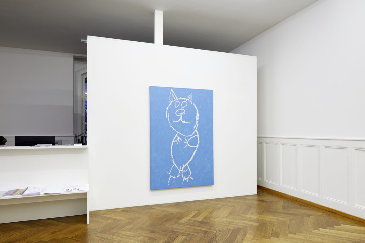 Entdeckungsfreude und die Lust an der Auseinandersetzung mit der eigenen Malpraxis bringen GRÉGORY SUGNAUX (*1989 in Fribourg, lebt und arbeitet in Fribourg) immer wieder zu neuen Ansätzen und Themen in seinem Schaffen. In der Gemälde-Serie Things that happen downstairs spielt Sugnaux mit der Veränderung des Betrachtungswinkels: Alltagssituationen wie Kreidezeichnungen auf Asphalt bedingen den Blick zu Boden. In grosszügiger malerischer Geste bringt der Künstler solche Szenen auf die Leinwand und somit auf Augenhöhe in den Raum.