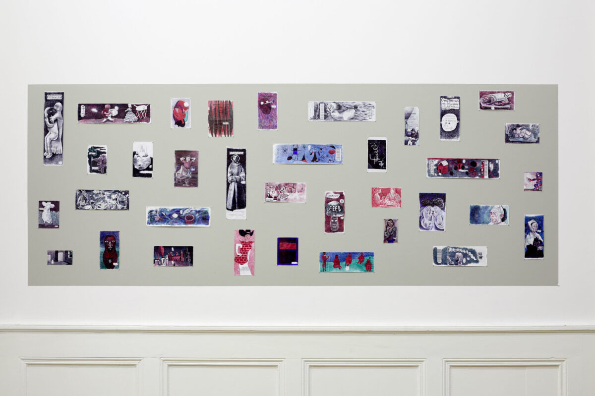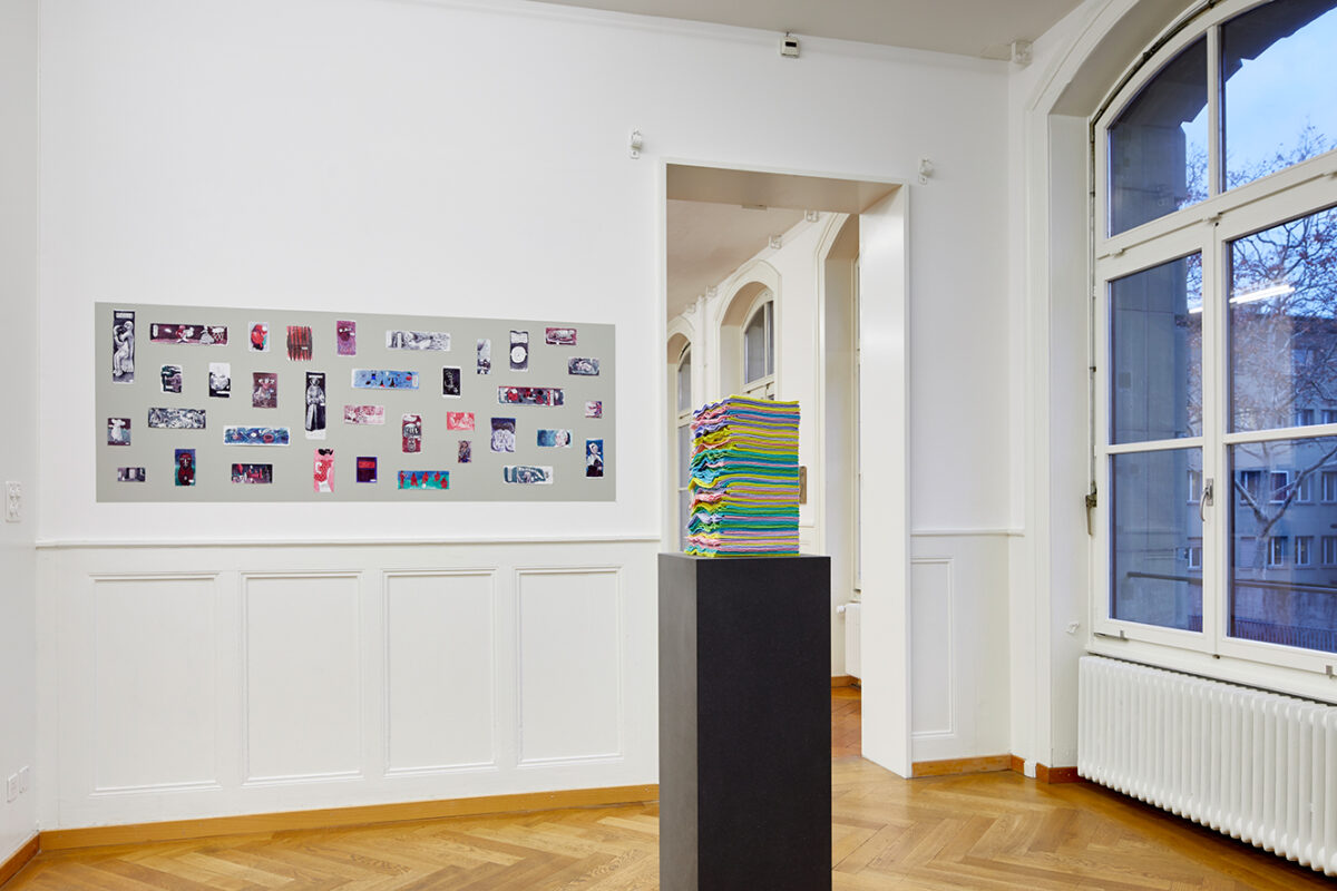 Der hier präsentierte Ausschnitt aus der fortlaufenden Zeichnungs-Serie Quittungen zeigt Darstellungen aus dem Bilderfundus von KAROLINE SCHREIBER (*1969 in Bern, lebt und arbeitet in Zürich). Sie bedient sich dafür sowohl bei den eigenen Zeichnungen als auch beim kunstgeschichtlichen Kanon wie beispielsweise Guernica von Pablo Picasso. Gezeichnet sind die Kleinformate auf Quittungen persönlicher Ausgaben, die keinen Eingang in Schreibers Steuererklärung finden. Der zehnfache Betrag des jeweiligen Einkaufspreises ergibt den Verkaufspreis der Zeichnung.