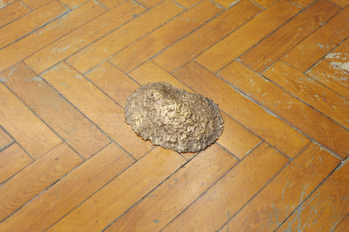 Die Serie Selbstportrait als Künstlerpaar von HAUS AM GERN [Barbara Meyer Cesta (*1959 in Aarau) / Rudolf Steiner (*1964 in Niederbipp), leben und arbeiten in Biel und Rondchâtel] setzt sich seit 1998 in unterschiedlichen Medien mit dem Selbstbildnis als eines der grossen Themen der Bildenden Kunst auseinander. Gleichzeitig kommentiert die Serie auch die eigene Beschäftigung mit sich als Künstlerpaar. Die Bronzeplastik SELBSTPORTRAIT ALS KÜNSTLERPAAR XXVI (Haufen) ist der Abguss eines kleinen Dreckhaufens. Dabei beziehen sich die Künstler auf die Paradoxie des Haufens, auch Sorites-Paradoxie genannt, die bei vagen Begriffen auftritt. Beispielswiese dann, wenn versucht wird, etwas als Haufen zu bestimmen: Es lässt sich keine konkrete, nicht willkürlich beschlossene Anzahl von Elementen angeben, aus denen ein Haufen mindestens bestehen müsste.