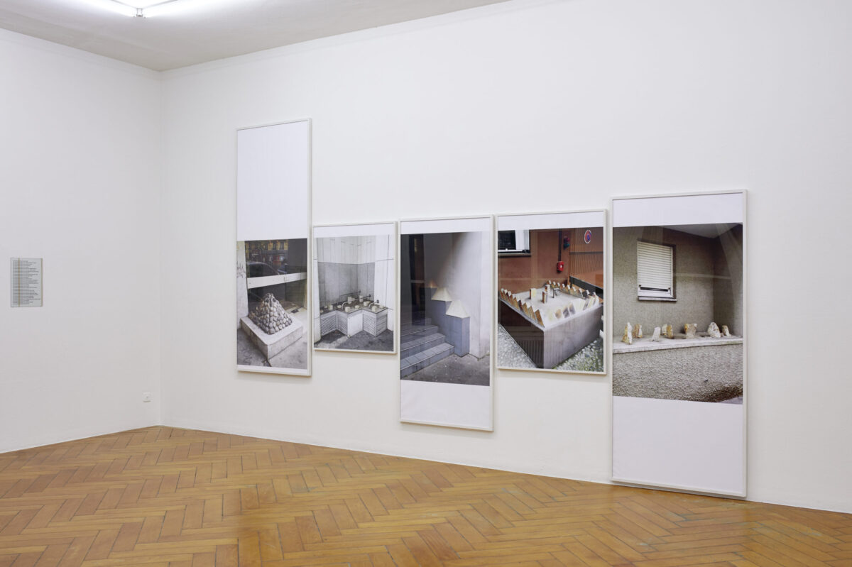Die Fotoserie Human Nature zeigt architektonische Eingriffe, welche im öffentlichen Raum als Barrieren dienen. Nicht genutzte Flächen von Gebäudehüllen wurden «dekoriert», um Randständige davon abzuhalten, diese als Schlafplatz zu nutzen. LIVIO BAUMGARTNER (*1982 in Jegenstorf, lebt und arbeitet in Zürich) hat diese Elemente bei Streifzügen durch Paris mit seinem Handy festgehalten. Diese rasch entstandenen Bilder sind als grossformatige Drucke im Ausstellungsraum präsent. Die vielfältige Ausgestaltung dieser Barrieren wird in Zusammenhang mit dem unterschiedlich grossen weissen Leerraum, der die Fotografien innerhalb der Rahmen umgibt, zu einem eigenen Muster.