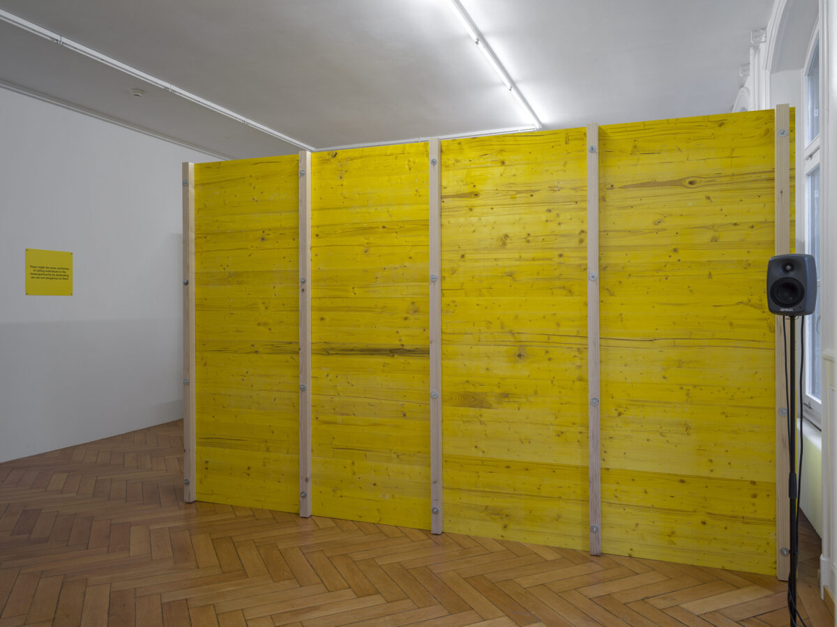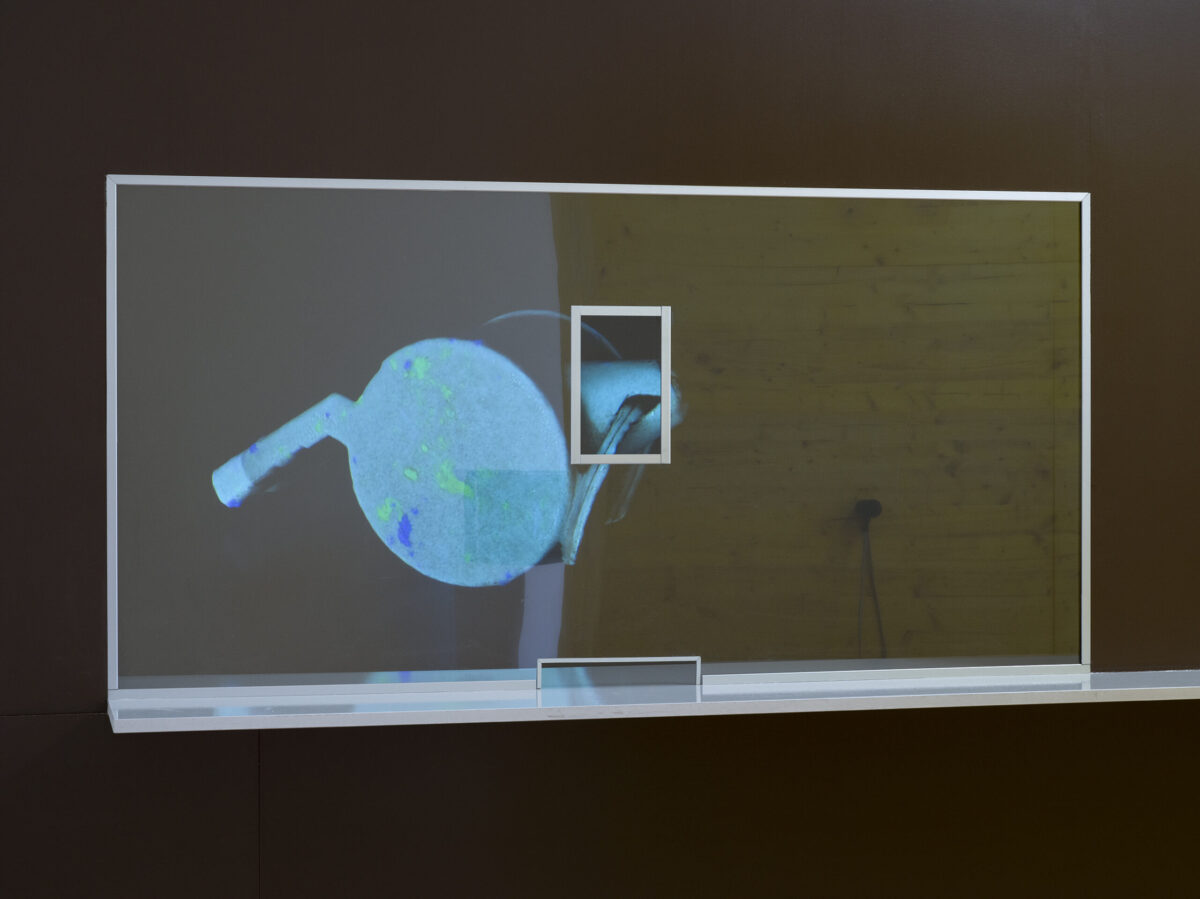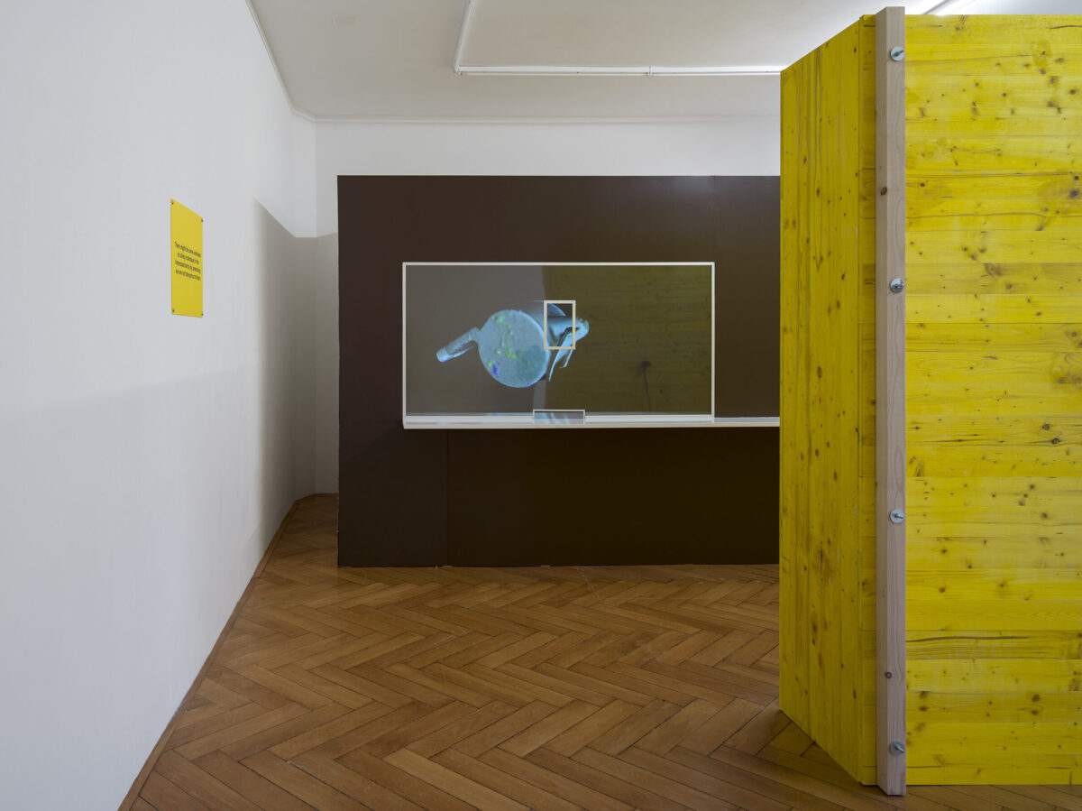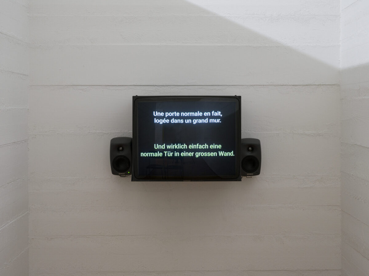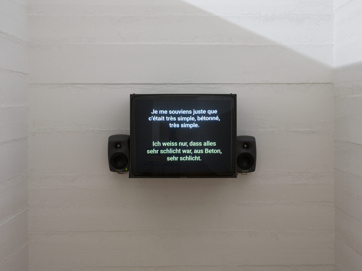Daneben läuft der in Bern gedrehte, wegweisende Film Bar jeder Frau (1991) der Regisseurin Katrin Barben. Alle zwanzig Minuten hallt der Pfiff einer Trillerpfeife durch den Raum, die ein Berner Mann, spätestens seit dem Homosexuellen-Register, stets bei sich trug, um vor der Polizei zu alarmieren. Im hintersten Raum berichten zwei Frauen aus dem Greenham Common Women’s Peace Camp über ihre Erfahrungen in einer Schutzraumanlage in Genf. Aus der Jukebox nebenan dringt eine Stimme. Ingo Swann spricht zu dir. Wieder. Die Arbeit stammt von Gianmaria Andreetta und Public Universal Frxnd, die damit eine Verbindung schaffen zu einer vergangenen Ausstellung im Programm der Stadtgalerie, die sie zusammen mit Nina Wakeford und Luca Beeler realisiert haben: Being a faggot-spaceman I am awesome., über den Künstler, Autor, Hellseher und Spion Ingo Swann.