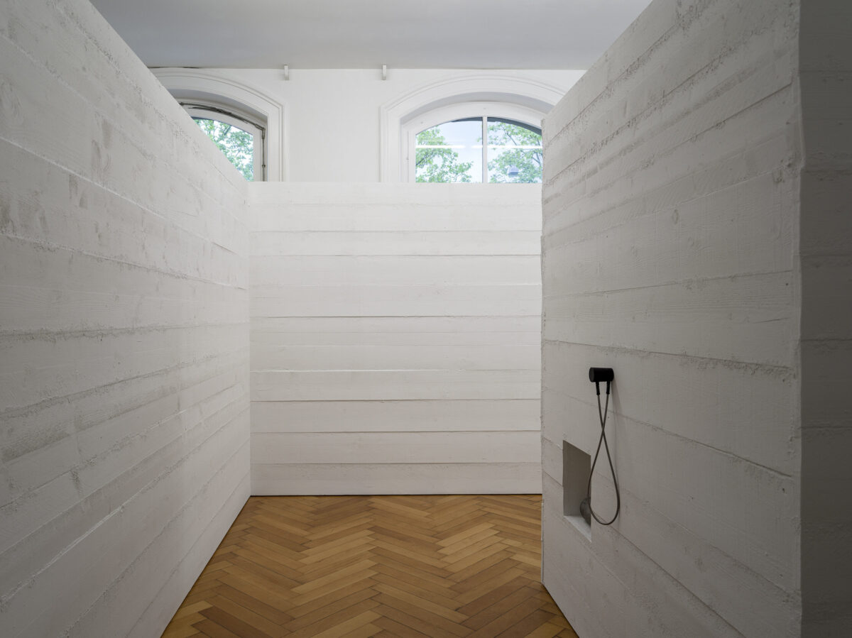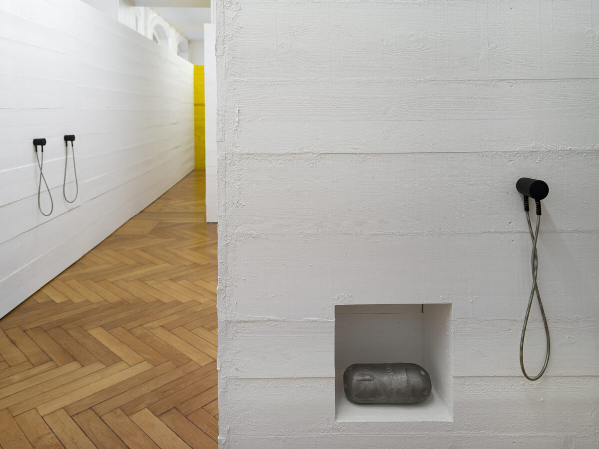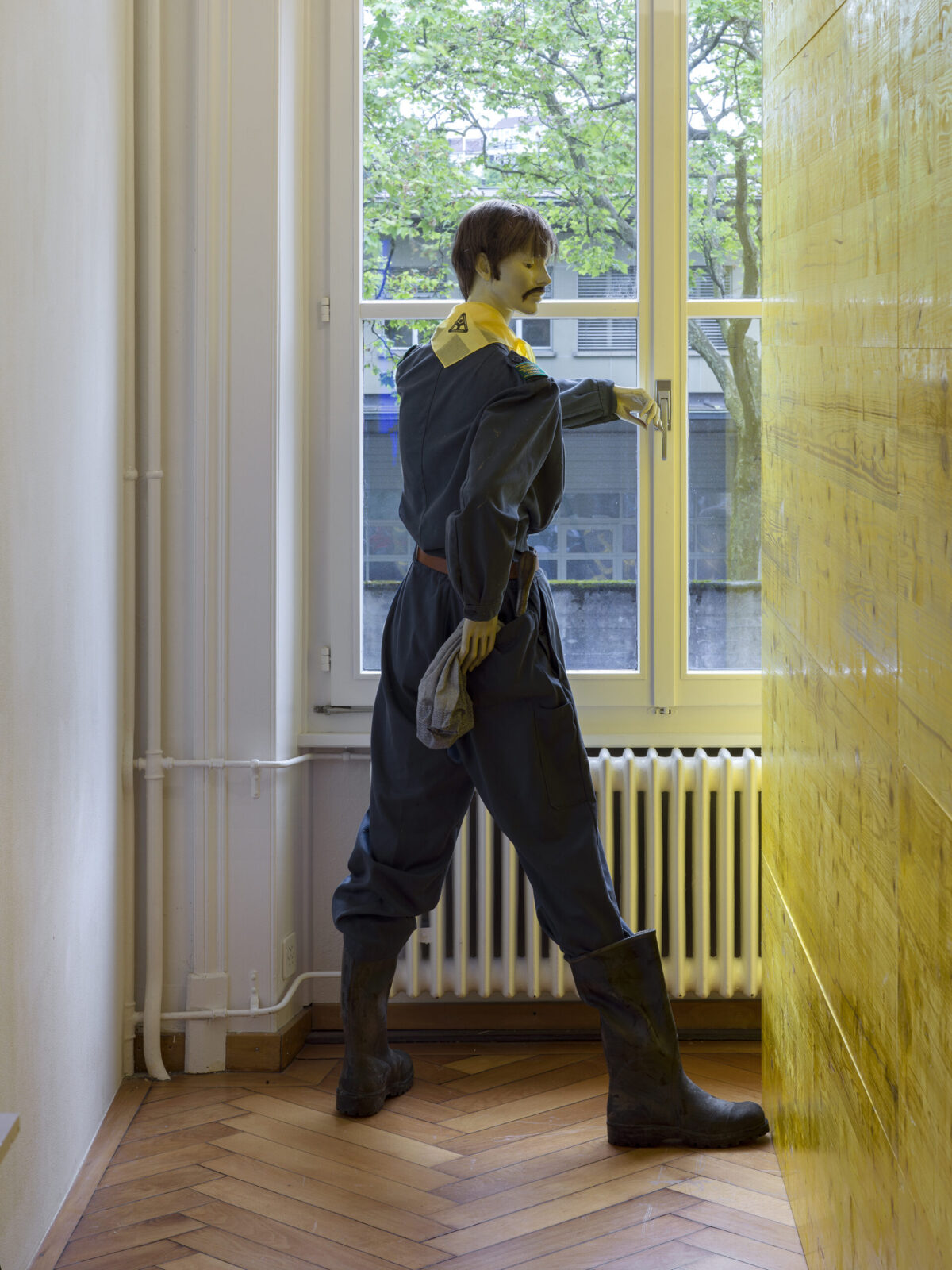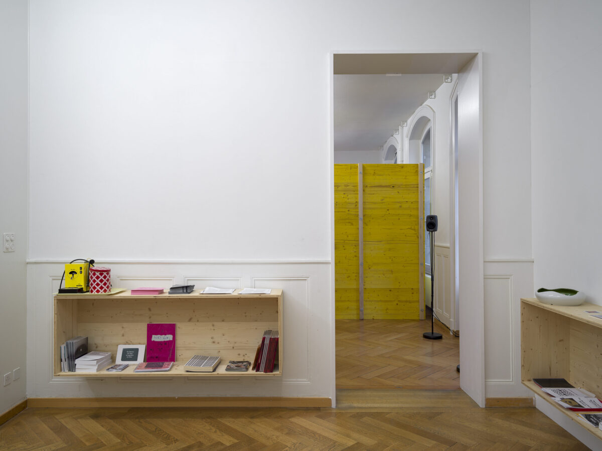 Daneben läuft der in Bern gedrehte, wegweisende Film Bar jeder Frau (1991) der Regisseurin Katrin Barben. Alle zwanzig Minuten hallt der Pfiff einer Trillerpfeife durch den Raum, die ein Berner Mann, spätestens seit dem Homosexuellen-Register, stets bei sich trug, um vor der Polizei zu alarmieren. Im hintersten Raum berichten zwei Frauen aus dem Greenham Common Women’s Peace Camp über ihre Erfahrungen in einer Schutzraumanlage in Genf. Aus der Jukebox nebenan dringt eine Stimme. Ingo Swann spricht zu dir. Wieder. Die Arbeit stammt von Gianmaria Andreetta und Public Universal Frxnd, die damit eine Verbindung schaffen zu einer vergangenen Ausstellung im Programm der Stadtgalerie, die sie zusammen mit Nina Wakeford und Luca Beeler realisiert haben: Being a faggot-spaceman I am awesome., über den Künstler, Autor, Hellseher und Spion Ingo Swann.