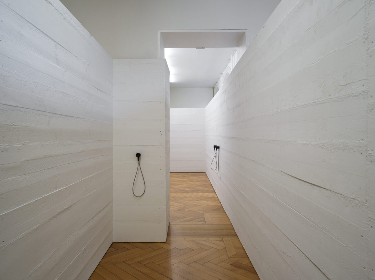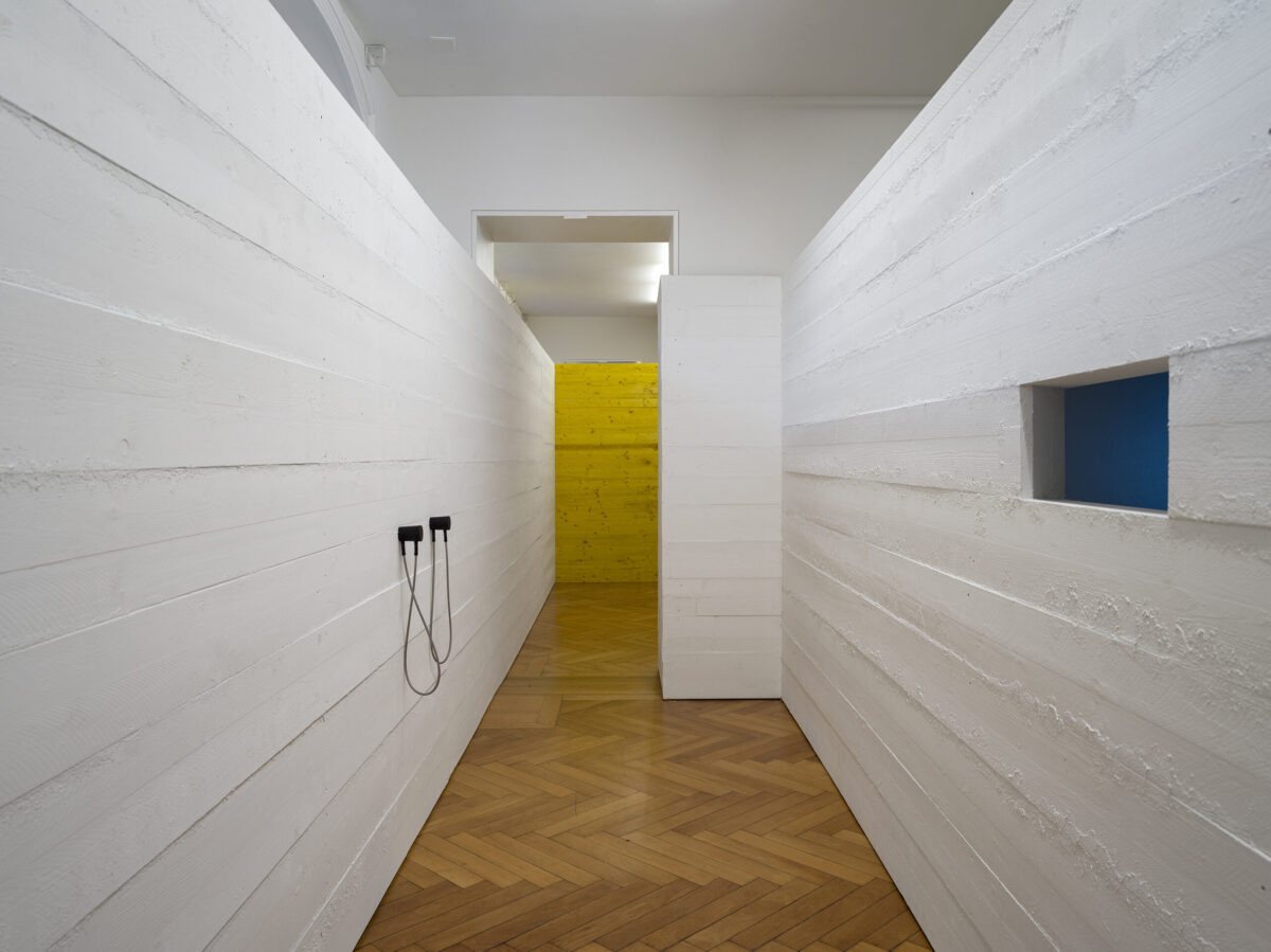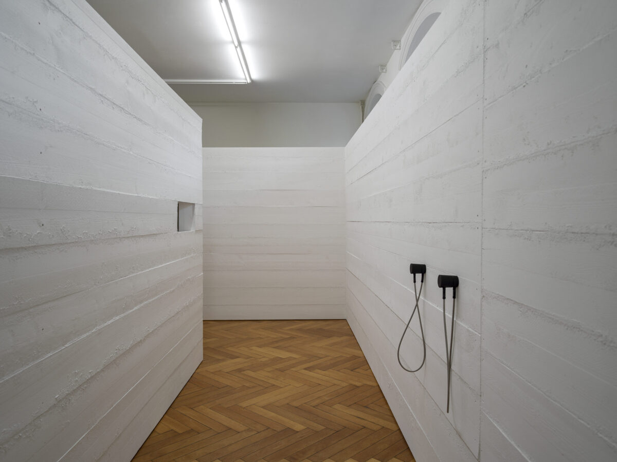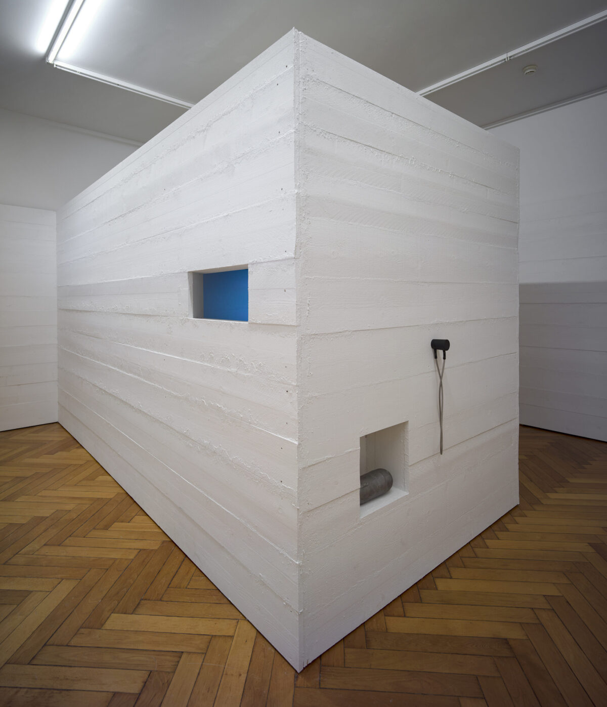 Das ist die Ausstellung. Ihre Architektur folgt einem idealtypischen Schutzraum. Dieser könnte aber auch durch eine Subkultur umfunktioniert worden sein. Die Szenographie erinnert an das Museum des Bletchley Parks oder an andere Formen der musealen Wissensvermittlung. Concrete Comeback ⚣⚢ Arms are for Linking erzählt unter anderem von Verdacht und Misstrauen, wie sie während des Kalten Kriegs verbreitet waren. Ein Misstrauen, welches sich auch auf die Faktizität der vermittelten Archivalien in der Ausstellung überträgt. Bevor du in die Struktur eintauchst, wirst du mit einer Reihe von Fragen konfrontiert. Verstehst du die codierte Sprache? Kennst du die Antworten?