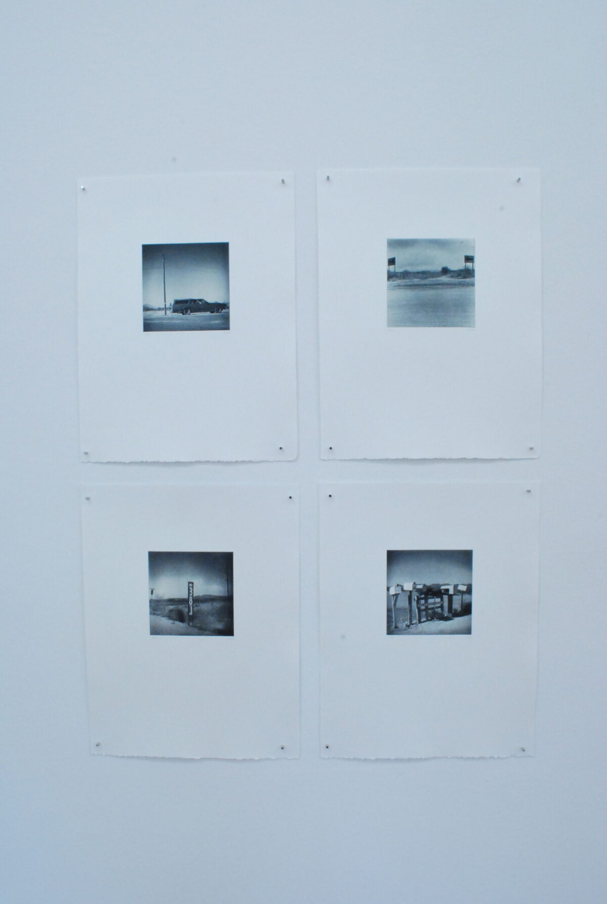 Edition VFO zu Gast, Stadtgalerie Bern, 2013. Reto Camenisch, (v.l.n.r.) Roberts Auto (Maine), 1998/2013 / Irgendwo in Utah, 1999/2013 / Miles (Neu Mexico), 1997/2013 / Letterboxes (Idaho), 1998/2013, Heliogravüre.