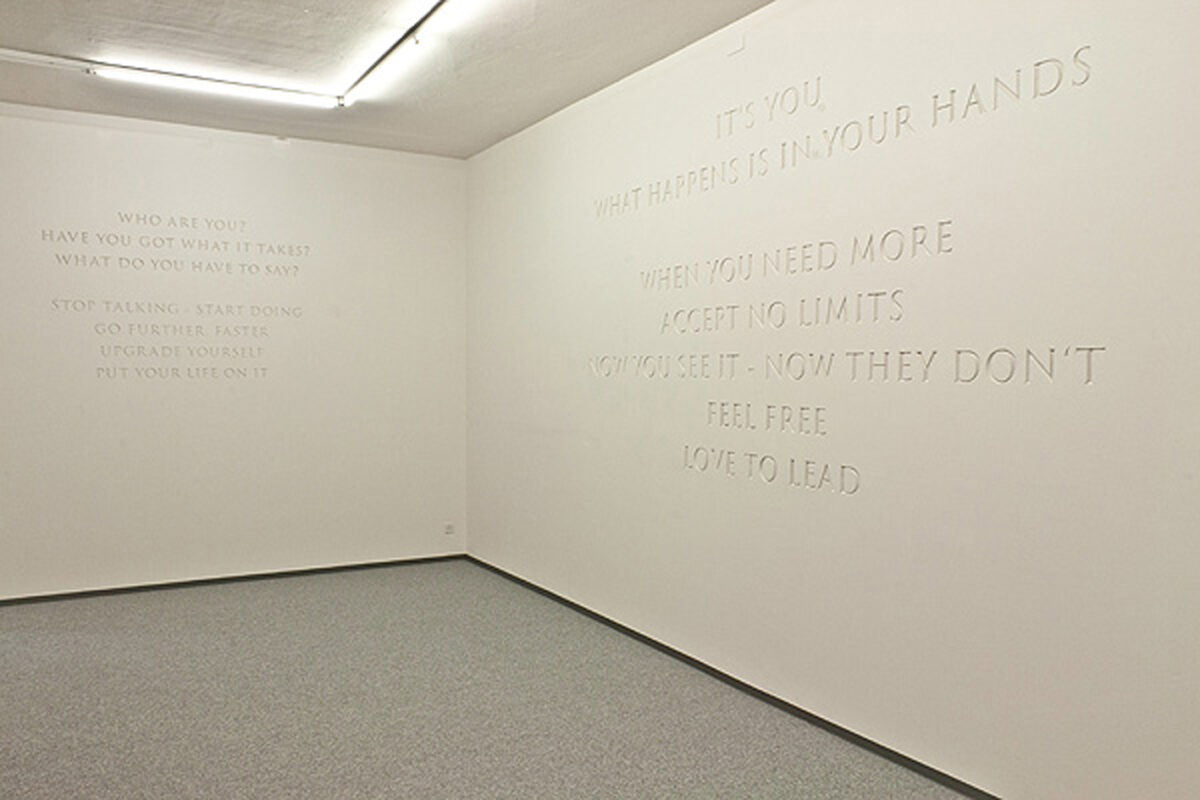 Das Gegebene verlangt nach Reaktion; die etablierten Fakten nach einer neuen Lesart. Zwei junge und aufstrebende Künstlerinnen, MURIEL BAUMGARTNER (*1976, Zürich) und ESTHER KEMPF (*1980, Zürich/Amsterdam) treffen in der kommenden Doppelausstellung in der Stadtgalerie erstmalig aufeinander und nehmen dabei eine gemeinsame methodische Haltung ein. Mit Begriffen wie Aneignung und Neuverwertung, Fragmentierung und Montage, Dekontextualisierung und Rekonstruktion können die Techniken benannt werden, die sie in ihren eigens für die Ausstellung produzierten Arbeiten zur Erprobung neuer Sinn- und Bedeutungszusammenhänge in der Welt der Kunst und der Alltagskultur einsetzen. Eine erfrischende Neulektüre des Offensichtlichen – oder aber ein Spiel, das sich unerwartet verfinstert und bekannte Erzählungen und Werte einer neuen, prekären Lesart zuführt.