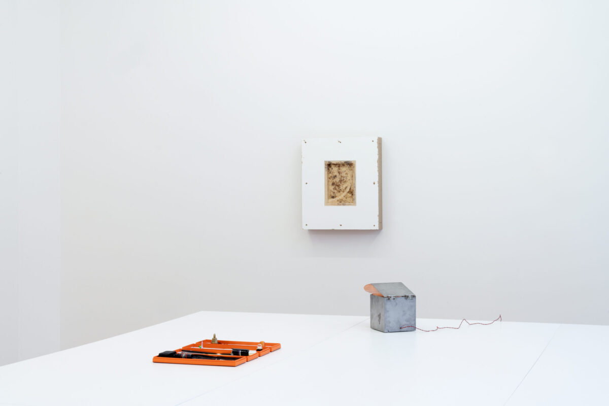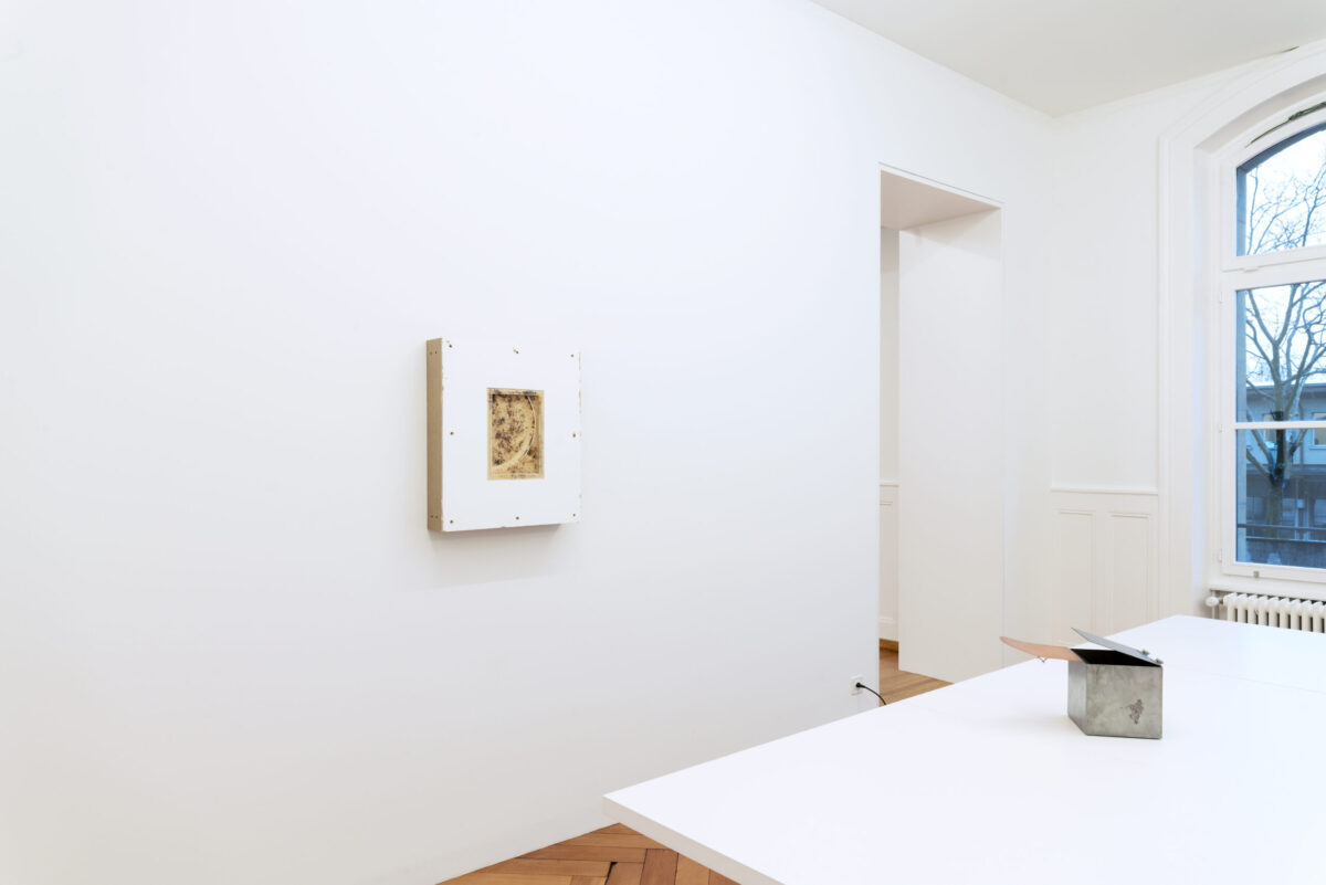 Man sieht, dass dieses Objekt eine historistische Hausapotheke war. Sie ist ihrer ursprünglichen Funktion nicht zwingend beraubt worden. Mit der Bearbeitung durch den Künstler hat sie bloss ihren Status geändert. Das Kästchen Ohne Titel ist überzogen mit Schichten die unterschiedliche Zeitlichkeiten suggerieren: Studiozeit des Künstlers, Zeit des Materials, Historismus. Eine verführerische Patina, die jeden Wunsch nach Authentizität bedient und gleichzeitig nie einlöst.