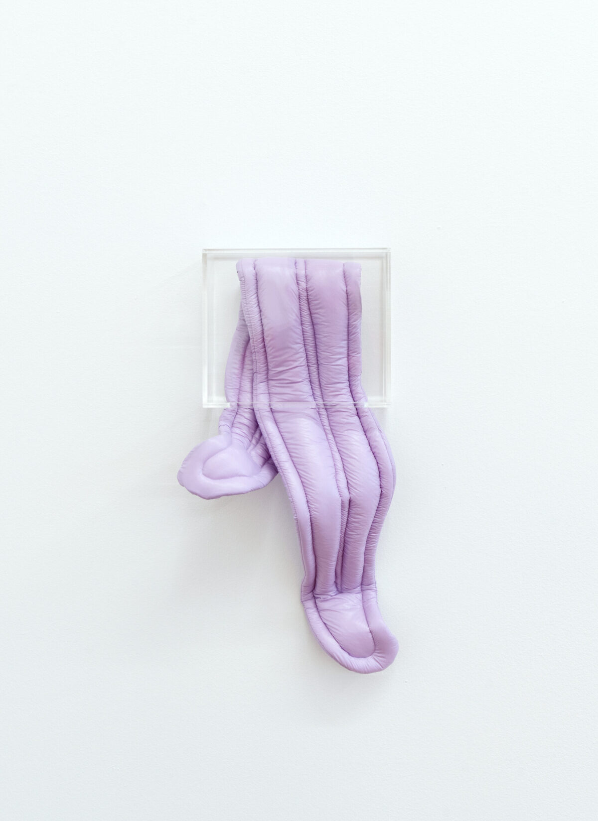Es sind synthetische Affekte, welche diese zungenartigen Objekte in Pose setzen. Transparente Kuben aus Acrylglas sind die Behälter der ansonsten körperlosen Zungen.