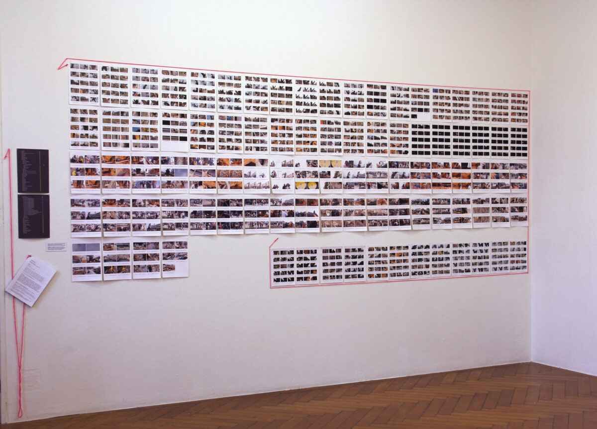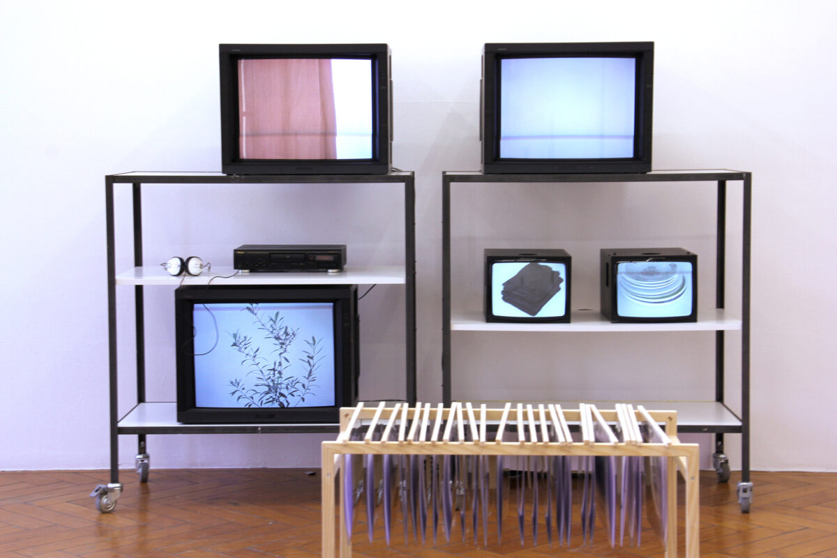MARICA GOJEVICs (1968) Erinnerungsräurne von 1999 ist ein Video-Inventar all ihrer damals im Haushalt vorhandenen Objekte. Die Küchenutensilien, Kleider oder Bucher wurden jeweils kurz von der Künstlerin vor einem neutralen, weissen Hintergrund aufgenommen. Durch die unterschiedlichen Takte des Hineinlegens und Hinausnehmens entsteht eine rhythmisierte Studie ihrer materiellen Besitztümer, wobei sich zufällige formale oder inhaltliche Parallelen zwischen den fünf zur Präsentation eingesetzten Monitoren ereignen. Die weisse Hintergrundfläche als visuelle Kontextlosigkeit passt zum Fakt, dass der persönliche Bezug zu den Gegenständen, deren Eingebettetsein in einen alltäglichen, lebensweltlichen Gebrauch nicht geklärt wird. Keine erhellenden Anekdoten oder weiterführende Kommentare werden gegeben. Ist für die Künstlerin die Arbeit stets eine Begegnung mit materiellen Zeugnissen und damit verbundenen Erlebnissen ihres früheren Lebens, enthaltet diese Form von persönlicher Archivierung dem Betrachtenden die Erinnerung vor und bewahrt sie stattdessen in einem privaten, uneinsichtigen Status. Zusätzlich zu den Videos sind auf einem Audiodokument Lieder zu hören, welche die Künstlerin oft in ihrer alten Heimat – dem heutigen kroatischen Teil des ehemaligen Jugoslawiens, von wo sie 1989 kriegsbedingt in die Schweiz flüchtete – sang. Einzig aus der Erinnerung und ohne Einübung aufgenommen, entsteht eine akustische Auslage von kirchlichem Gesang, propagandistischen Polit-Songs und kommunistischen Lobeshymnen, die die klangliche Atmosphäre, den akustischen Hintergrundteppich dieses hermetischen Erinnerungsraums bilden.