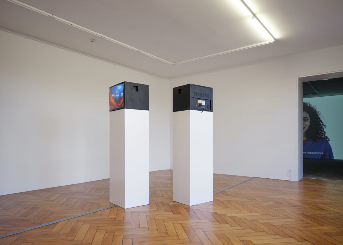 Die Ausstellung der Künstlerin und Filmemacherin Jenna Bliss (*1984 in Yonkers, New York) in der Stadtgalerie fügt sich aus vier Videoarbeiten zusammen, welche die Terroranschläge vom 11. September 2001 als Ausgangslage haben. Die zentrale Arbeit der Ausstellung Professional witnesses. (2021), besteht aus acht Episoden. Acht Schauspieler*innen schildern in ihrer Rolle als «Survivor» ihre persönliche Erfahrung von 9/11: Ein Lieferant, eine Rettungssanitäterin, ein Hauswart, eine Büroangestellte, ein Künstler, ein Feuerwehrmann im Ruhestand, eine Studentin und ein Wall Street Broker. Man könnte Professional witnesses. als einen «Mockumentary» beschreiben – ein vorgetäuschter Dokumentarfilm: Ein Genre, das oft Form und Konventionen des Dokumentarischen selbst zum Thema macht. Die fiktive Produktionszeit des Videos lässt sich anhand des Filmschnitts, des Castings, des Bildformats und der Mode ungefähr dem Jahr 2002 (kurz nach 9/11) zuordnen. Die Interview-Situation im Studio vor weissem Hintergrund, sowie das Plakat zur Ausstellung hat Bliss dem Werbestil der frühen 2000er nachempfunden: Benetton, Gap, Old Navy und vor allem Apples «Switch»-Kampagne des Dokumentarfilmers Errol Morris kommen einem in den Sinn. Die geskripteten Interviews wurden durch tatsächliche Zeugenaussagen inspiriert, die von der Künstlerin und Filmemacherin Ruth Sergel in ihrem Projekt Voices of 9.11 – A People’s Archive (2002 – 2003) aufgezeichnet und archiviert wurden, sowie durch Interviewtranskripte von «First Respondern», den Bericht der 9/11-Kommission und Sekundärmaterialien. Die Monologe anerkennen die Realität der Erfahrung sozialer Ungleichheit der einzelnen – und unterlaufen so die formale Sprache der Werbespots aus den 2000er Jahren, die Diversität als blosse Chiffre für einen marktliberalen Individualismus verwendeten. Damit führt die Künstlerin mit sardonischem Humor eine Spannung ein, unter der diese geskripteten Interviews zu interpretieren sind. Bliss’ Einzelausstellung Now vacant. offeriert ein Zusammenspiel unterschiedlicher Zeitlichkeiten. Sie produziert ein Vakuum, eine Vakanz. Keine Gegenwart, kein Spektakel. Die Flugzeuge bleiben am Himmel.