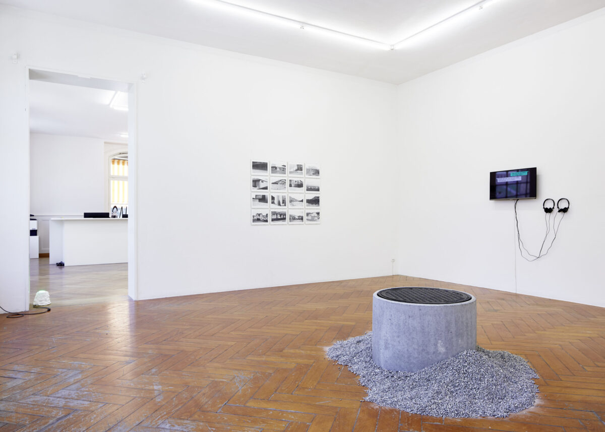 URSINA LEUTENEGGER (*1989 in Bern, lebt und arbeitet in Bern) und LEA-NINA FISCHER (*1989 in Baden, lebt und arbeitet in Bern) deuten mit Zugang 46°57‘01.1“N 7°26‘38.2“E und Zugang 46°57‘02.7“N 7°26‘00.5“E eine unterirdische Verbindung zwischen der Stadtgalerie und dem Schwob-Haus an. Während an beiden Orten die Einstiege mit einem Senklochdeckel verschlossen sind, erfährt man anhand einer Postkarte die genauen Standorte. Die Künstlerinnen stellen sich vor, was man im Untergrund auf dem 32 Höhenmeter überwindenden Weg alles antreffen könnte und hören würde.