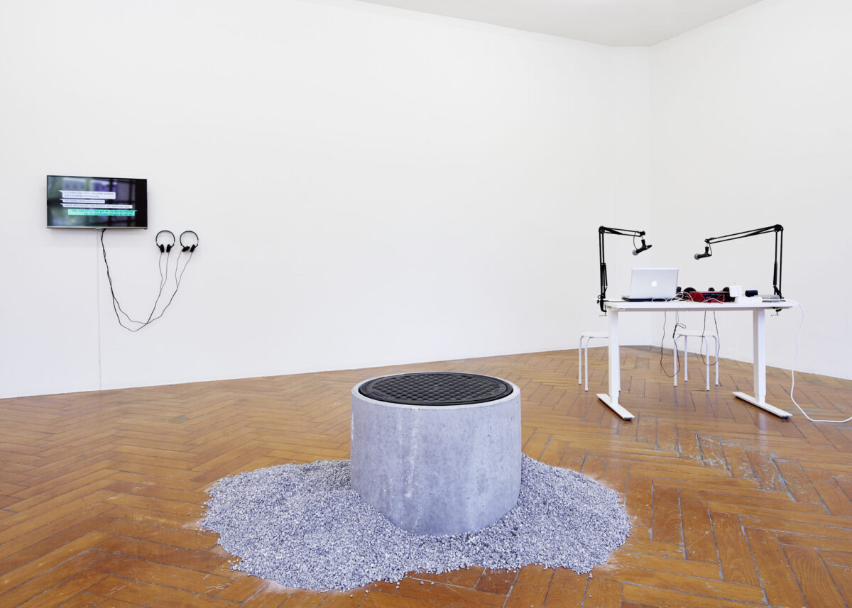 Die Radiostation von OLIVIA ABÄCHERLI (*1992 in Stans, lebt und arbeitet in Bern) sendet während der gesamten Ausstellungsdauer 24 Stunden am Tag ein Live-Radio aus der Stadtgalerie. Von Mittwoch bis Samstag findet jeweils um 15 Uhr ein angekündigter Beitrag statt, den Abächerli und ihre Gäste in Form von Gesprächen, Lesungen und Musik gestalten. Während der restlichen Sendezeit zeichnet das Radio die zufälligen Geräusche in den Räumen sowie die Interaktion der Ausstellungsbesucher auf.