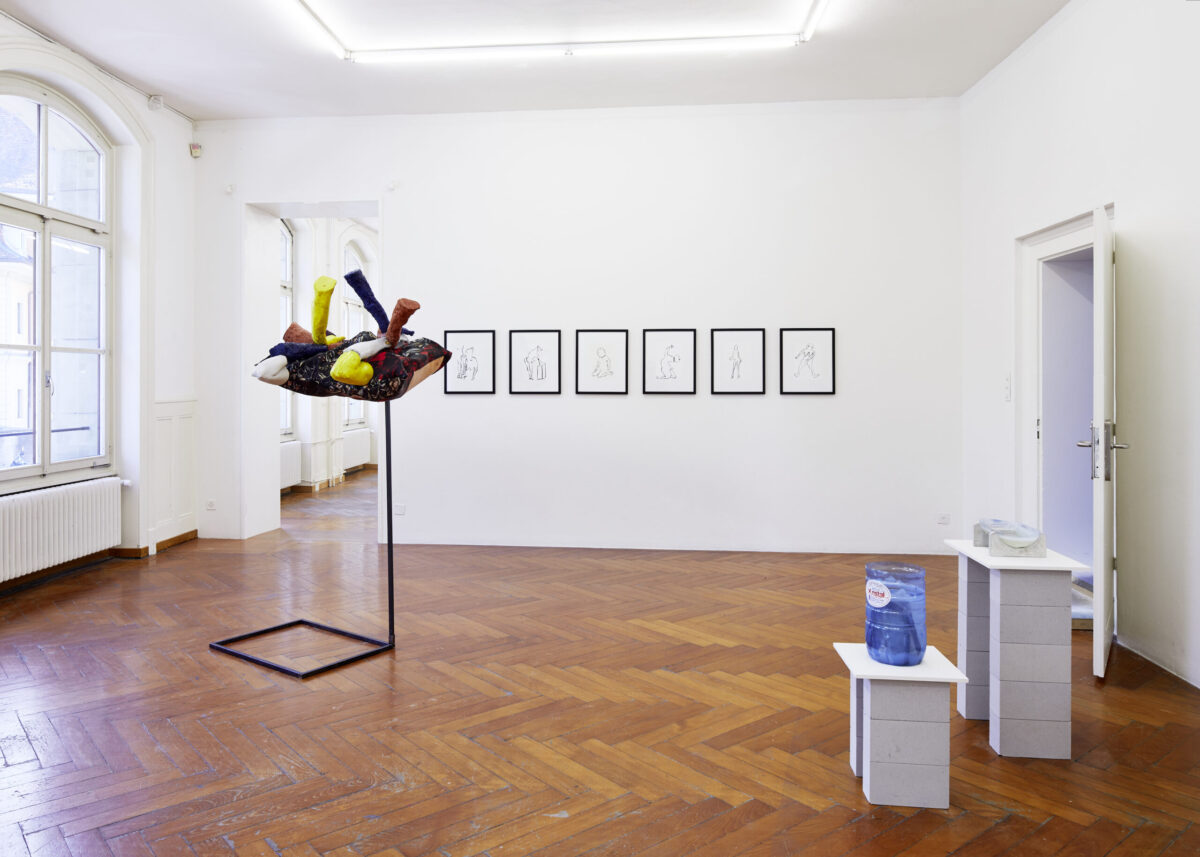 Die Zeichnungsserie von NATASCHA MOSCHINI (*1982 in Stuttgart, lebt und arbeitet in Bern) zeigt Figuren, die miteinander in eine intime Beziehung treten. Das Geschehen bewegt sich zwischen abstrakten und lesbaren Situationen. Mit dem Titel bitte bezieht sich die Künstlerin auf die implizite Einladung, welche das Wort mit sich bringt sowie auf das Geben und Nehmen in zwischenmenschlichen Beziehungen.