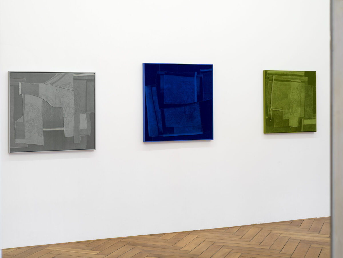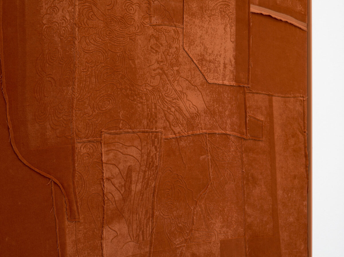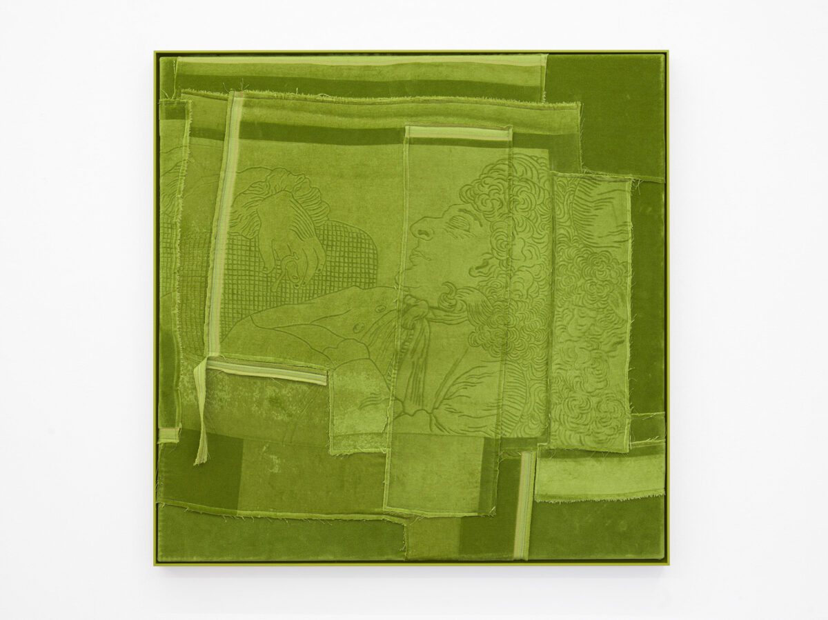 Die Drucke in PUDER entstanden ohne die Verwendung von Farbe. Unter Last pressen sich die Druckplatten in die Fasern des voluminösen und geräuschschluckenden Samts. In den Aushebungen des Holzschnitts bleiben die Fasern stehen, während sie flachgedrückt werden, wo die Platte auf dem Stoff aufliegt. Die Zeichnung, die durch diese Prägung entsteht, hebt sich mal schärfer und mal weniger scharf ab und ändert sich je nach Lichteinfall. Die durch Flicken fragmentierten Figuren in den Bildern schlafen. Ihre machtvolle Repräsentation ist nunmehr barocke Kulisse und ihre lockigen Perücken zeichnerisches Ornament. In den schlummernden Figuren hallen die politischen Karikaturen des 18. Jahrhunderts nach und ihre Kritik der aufkommenden Bourgeoisie an der Aristokratie. Die schlafenden Autoritäten haben – wie Gullivers Reisen – ihren Weg ins Kinderbuch gefunden und tauchen in Cédric Eisenrings Drucken als psychedelische Teppich-Projektionen auf. Cédric Eisenring interessiert sich in seiner Praxis für den Transfer und die Übersetzung von einem Medium zum anderen. Er bringt disparate Techniken und Motive zusammen. In früheren Arbeiten verwendete er beispielsweise Industrieabfall als Druckplatten für Kaltnadelradierungen, auf die er Motive kratzt, die der Geschichte des Drucks zu entstammen scheinen. Das eigentliche, gestanzte Industrieprodukt prägt sich als Leerstelle ins Papier. Seine Arbeiten beschwören ein kollektives Gedächtnis, während sie gleichzeitig ein ständiges Überschreiben und Verschwinden suggerieren. Zeitlich verweisen sie in alle Richtungen. Das Vergangene dringt geisterhaft durch.