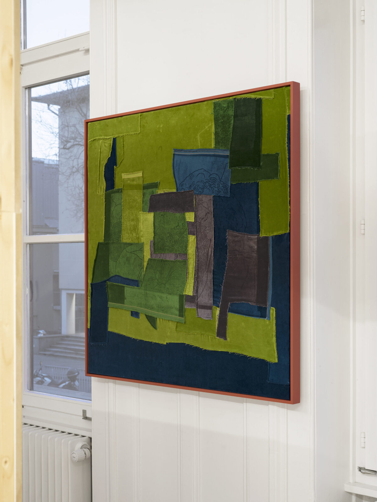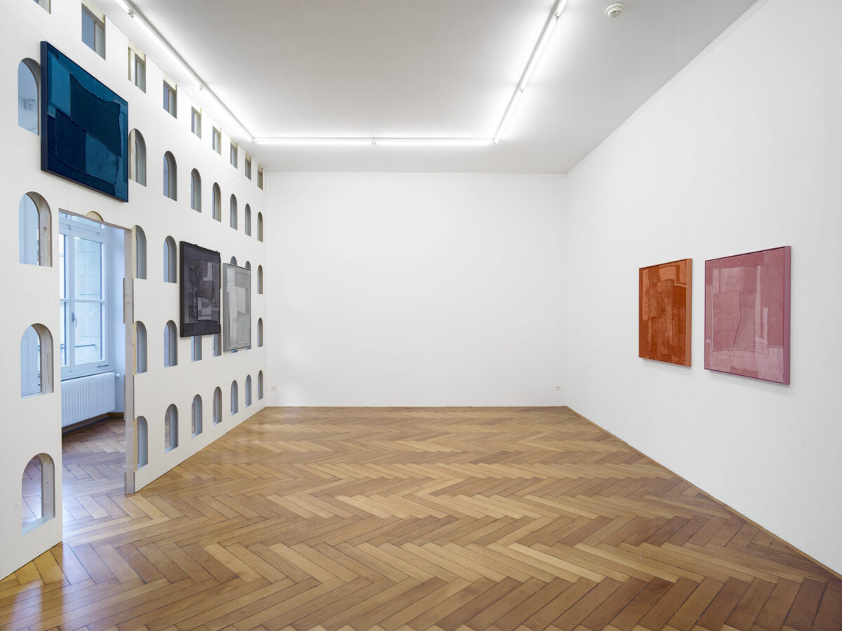 In PUDER wird der Samt, der in Gemäldegalerien als Wandtapeten verwendet wurde, in die Bilder überführt. Der Samt bekommt dadurch taktile, körperliche bis häusliche Qualitäten: zwischen Mode und Möbel. Mit der Arbeit Grater (2024) wendet Cédric Eisenring das Prinzip der industriellen Stanzung auf die Ausstellungsarchitektur an. Die Perforierung lässt Leerstellen als Fensterchen entstehen. Die gesamte Ausstellung konzentriert sich hauptsächlich auf die Längswände der Galerie. Die parallel verlaufenden Wände werden so zu verräumlichten Druckebenen. Cédric Eisenring spielt in PUDER mit einer materiellen Wortwörtlichkeit von Druck und Prägung. Seine Gemäldegalerie bewegt sich in scheinbar widersprüchliche Richtungen zwischen Wiederholung, Kontinuität und Veränderung, dem Häuslichen und Öffentlichen, Kritik und Vereinnahmung.