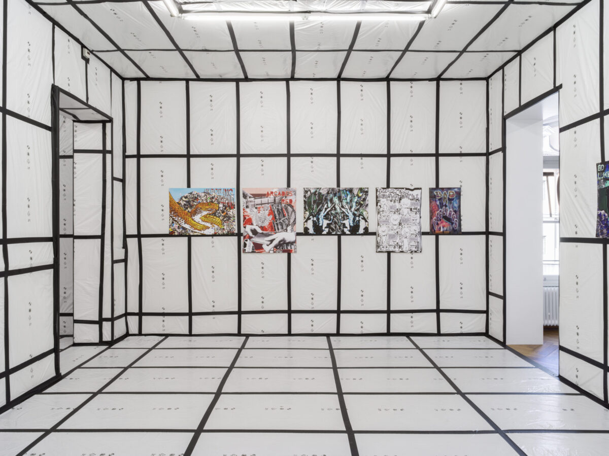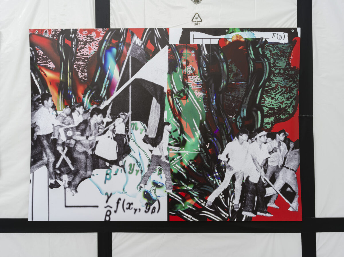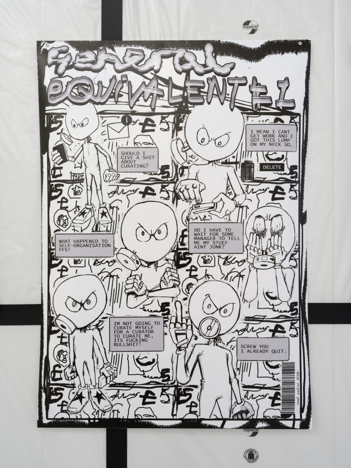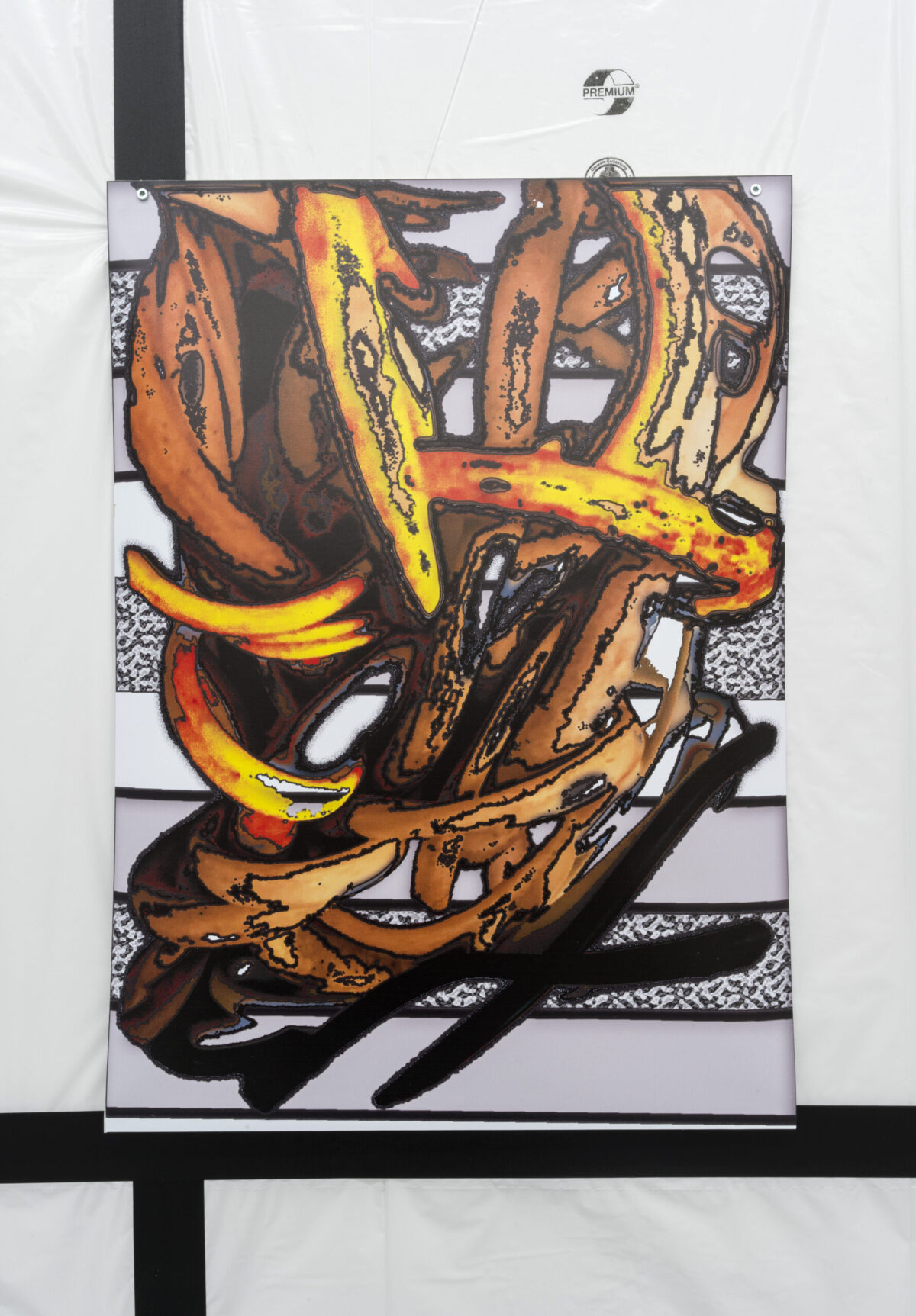 Sophie Carapetian, Refuse to Collaborate, Detailansicht, General Equivalent #1 (Illustration mit Stephan Sadler), Stadtgalerie Bern, 2022. Foto: Cedric Mussano