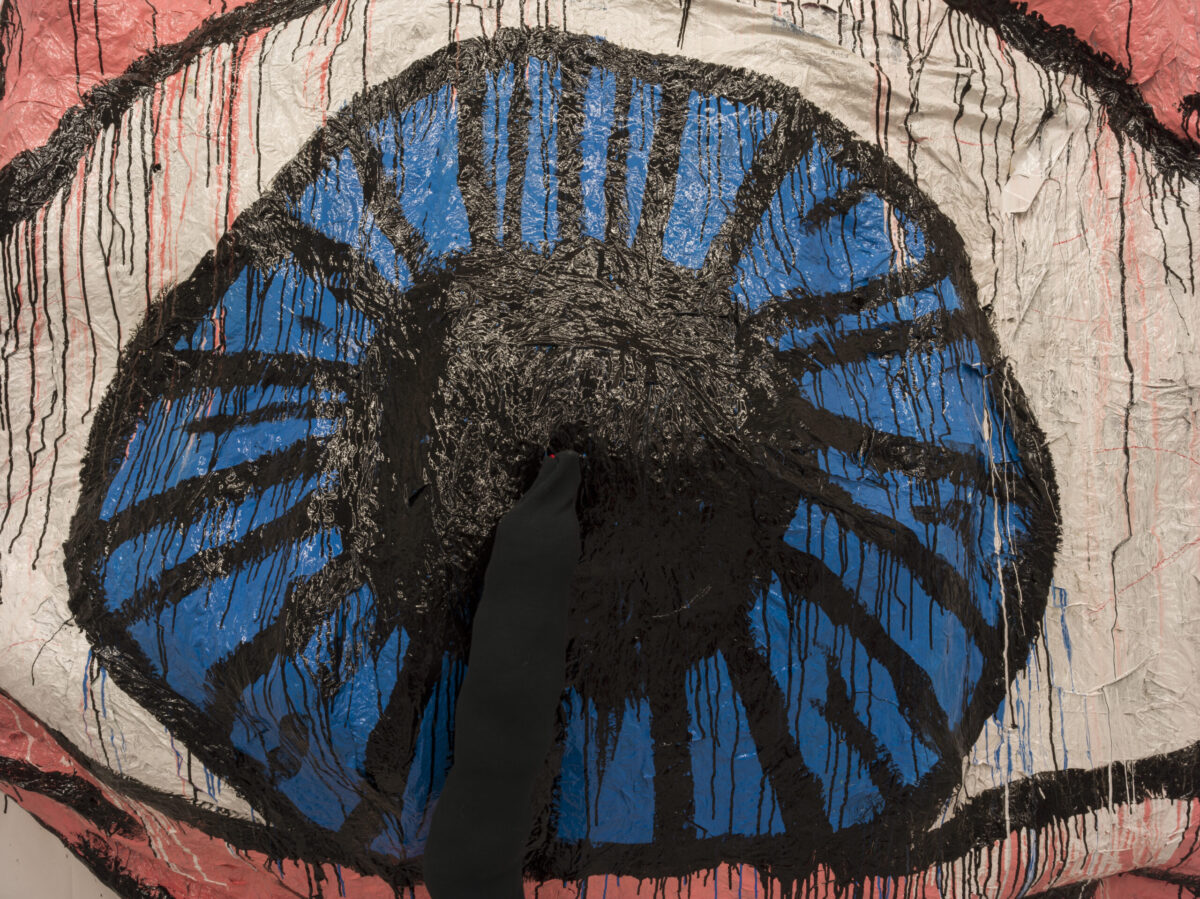 Sophie Carapetian, Refuse to Collaborate, Detailansicht, an an inquiry into how to live when the future is foreclosed (in Zusammenarbeit mit Kosher Duff), Stadtgalerie Bern, 2022. Foto: Cedric Mussano