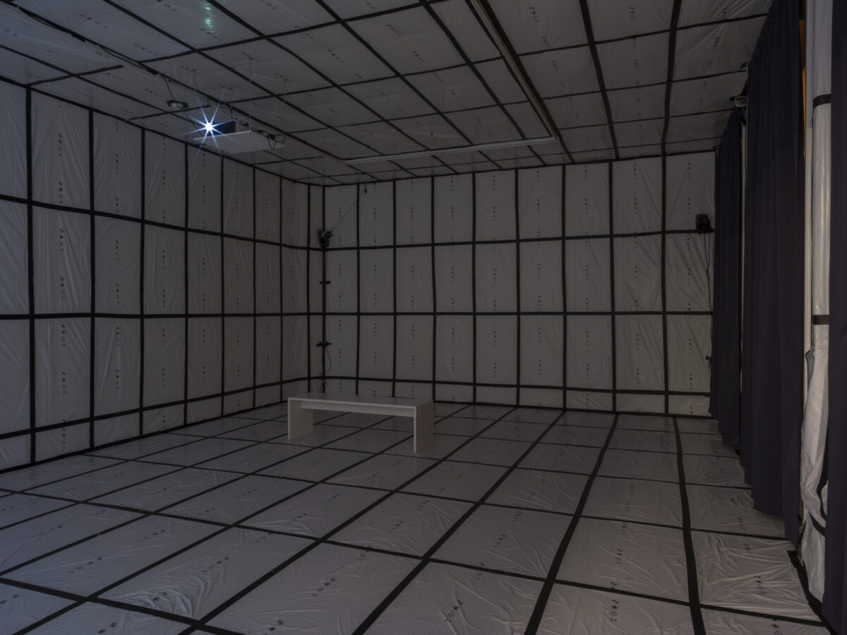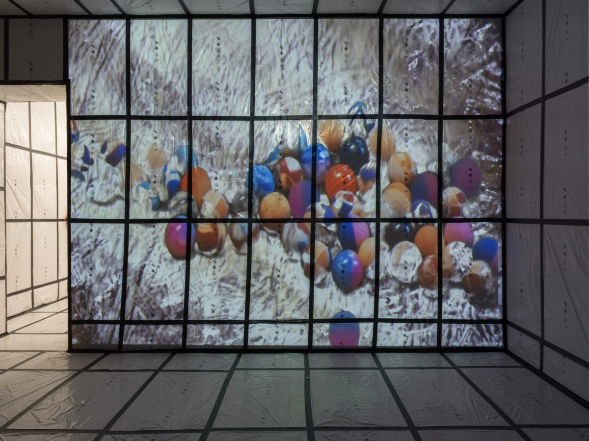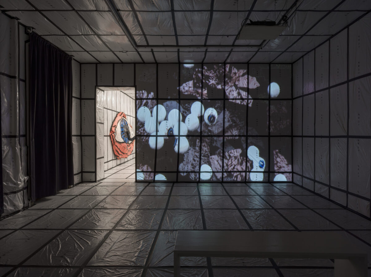 Sophie Carapetian, Refuse to Collaborate, Detailansicht, Heavy Waters (in Zusammenarbeit mit Ed Luker), Stadtgalerie Bern, 2022. Foto: Cedric Mussano
