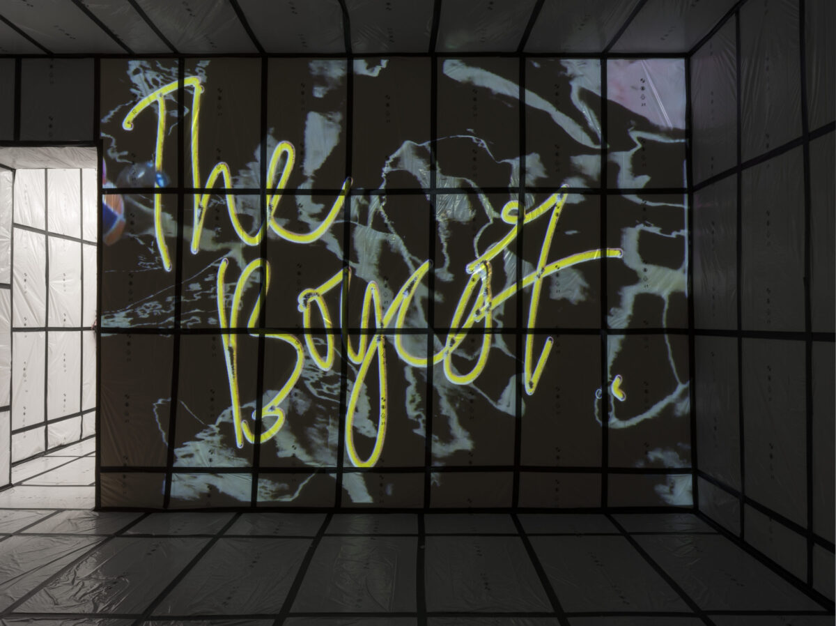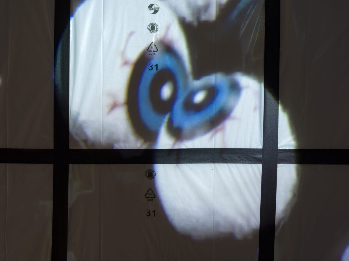 Sophie Carapetian, Refuse to Collaborate, Detailansicht, an inquiry into how to live when the future is foreclosed (in Zusammenarbeit mit Kosher Duff), Stadtgalerie Bern, 2022. Foto: Cedric Mussano