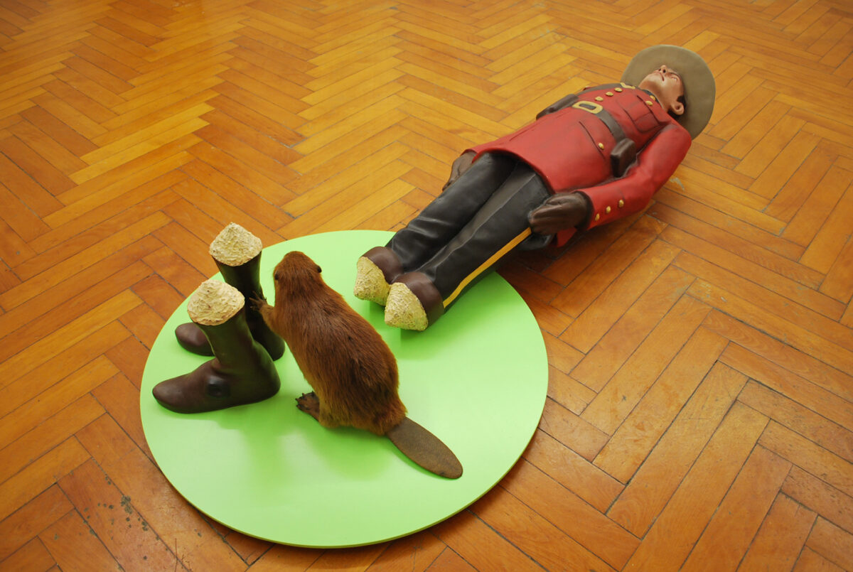 Die Fabrik der Tannenbäume von BGL kann als Kritik an der Konsumgesellschaft gelesen werden und der exzessiven Kommerzialisierung ihrer Rituale. Das Duo COOK-SASSEVILLE verzerrt im Werk Maintiens le droit (2012) Symbole der kanadischen Identität (berittene Polizei, Biber, Wald), die sich selbst zerstören und enthüllt damit ihre Konstruiertheit mit einem quietschenden Humor.