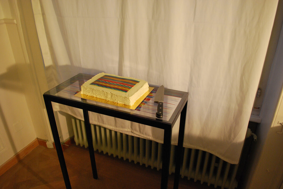 JÉRÉMIE GINDREe imitiert die Präsentationsart der naturhistorischen Museen (Archivierung und Authentifikation); in seinem Werk Le present lässt er den gemeinschaftlichen Akt des sich Versammelns beim Grillen von Würsten unsterblich werden.