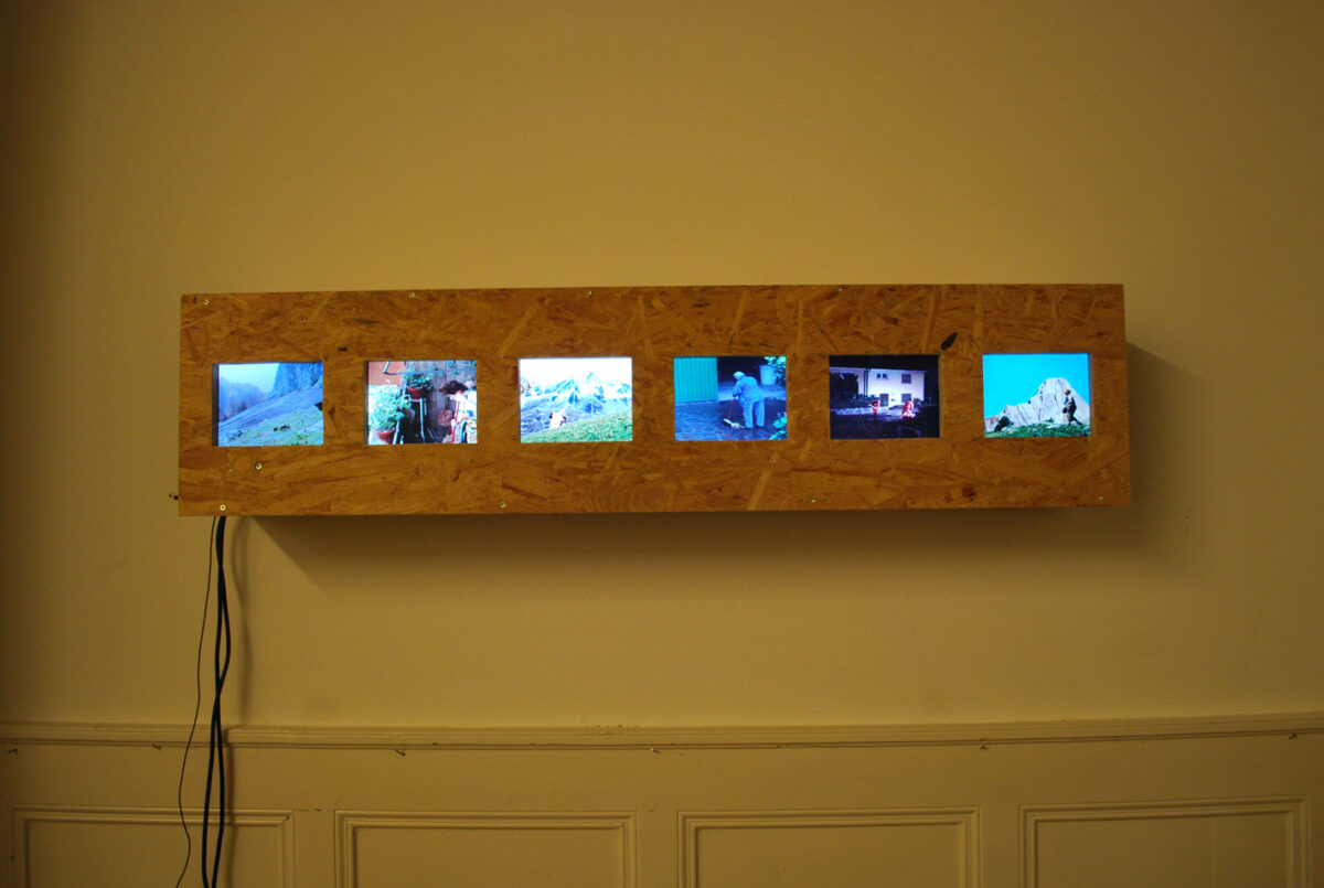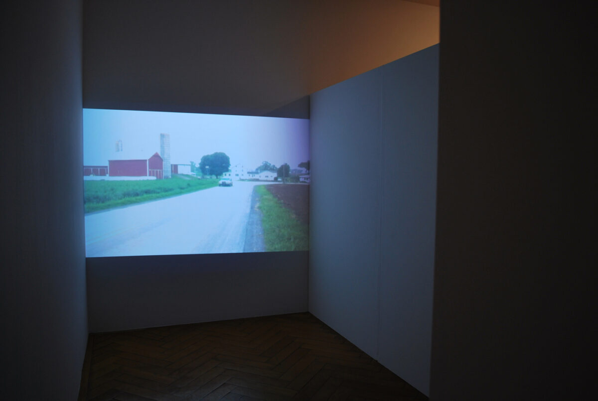 OLAF BREUNING inszeniert in seinem Video Home 1 (2004), ein Individuum, das in einem Hotelzimmer isoliert ist und das sich als Zeichen seiner Desorientierung diverse ruchlose Taten gegen zahlreiche Symbole, die der Populärkultur im Westen Eigen sind, ausmalt.