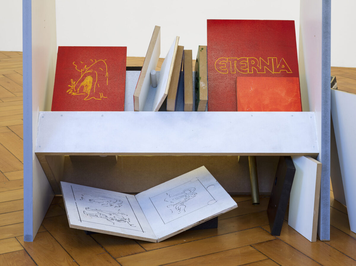 Für seine bisher grösste Einzelausstellung in der Stadtgalerie Bern entstanden ausgehend von diesem umfangreichen Materialfundus eine neue Videoarbeit, Objekte und Installationen, die das Bild, den Bildträger sowie deren technische Vervielfältigung in ihrem komplexen Zusammenspiel beleuchten.