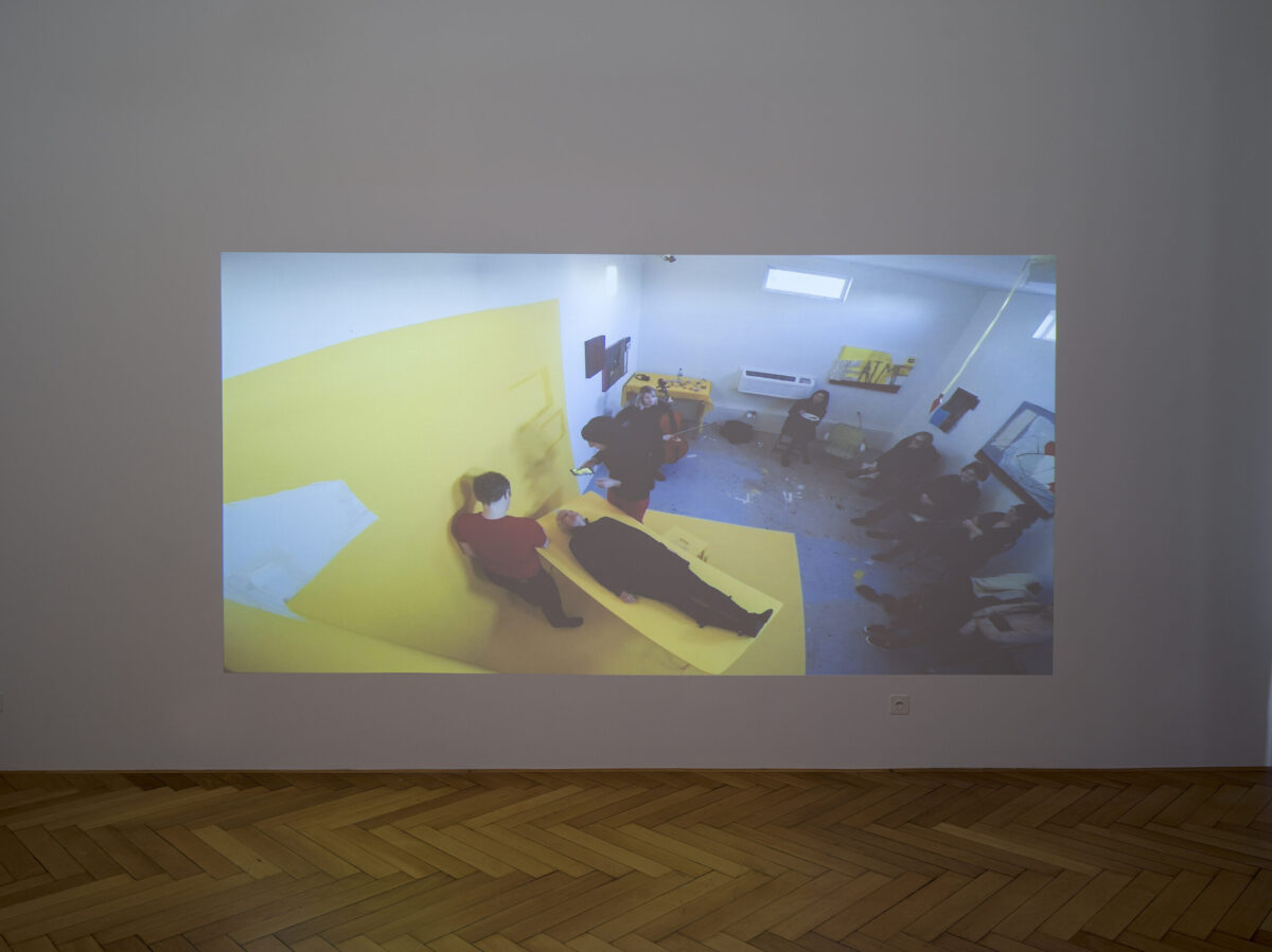 Slow Dance fügt sich aus sechzehn unterschiedlichen Szenerien in vier Ausstellungen über einen Zeitraum von einem halben Jahr zusammen. Während dieser Zeit bleiben die Räume durch zwei Wände mit je einer Türe strukturiert. Anstatt Überblick zu geben, offerieren sie Passagen. Slow Dance könnte das Verhalten einer Person im Gespräch