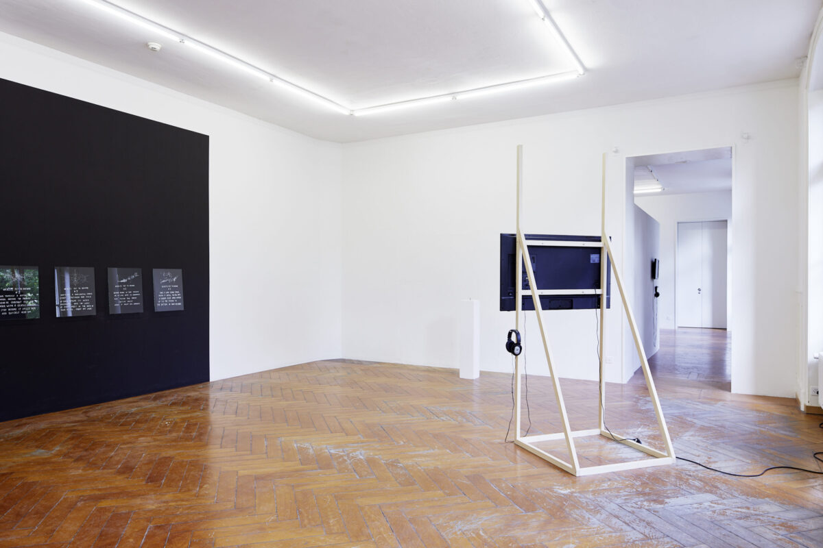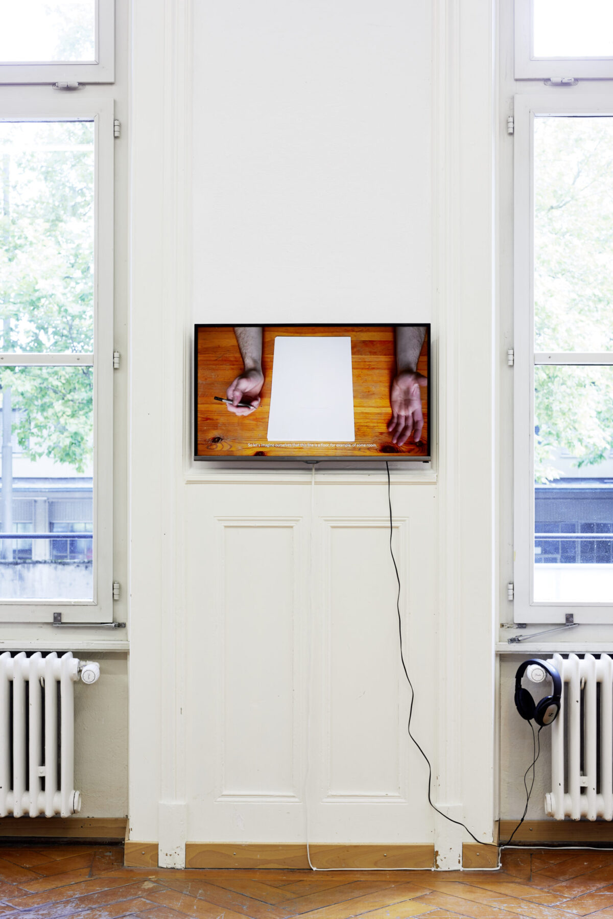 Dem direkt erfahrbaren Raum stellt INES MARITA SCHÄRER (*1987 in Chur, lebt und arbeitet in Bern und Chur) die Imagination gegenüber. Ausgangslage für ihre Arbeit bilden verschiedene Beschreibungen eines ihr unbekannten Kunstwerks, welche sie von anderen Personen geschildert bekommen hat. Diese Erzählungen übersetzt die Künstlerin in einen textlichen Raum, den sie mit ihrer Vorstellung erkundet. In A Performance (das Haus von Adolf Loos) (2017) nutzt Schärer das architektonische Werk von Adolf Loos als Umgebung für die Beschreibung einer Performance – die realen Begebenheiten des Hauses werden erfahrbar gemacht und durch Fiktion verändert und erweitert.