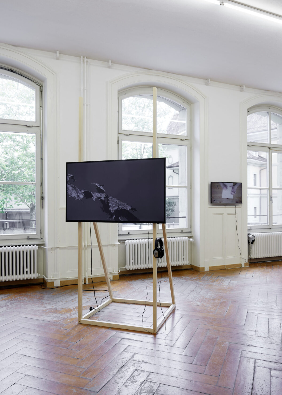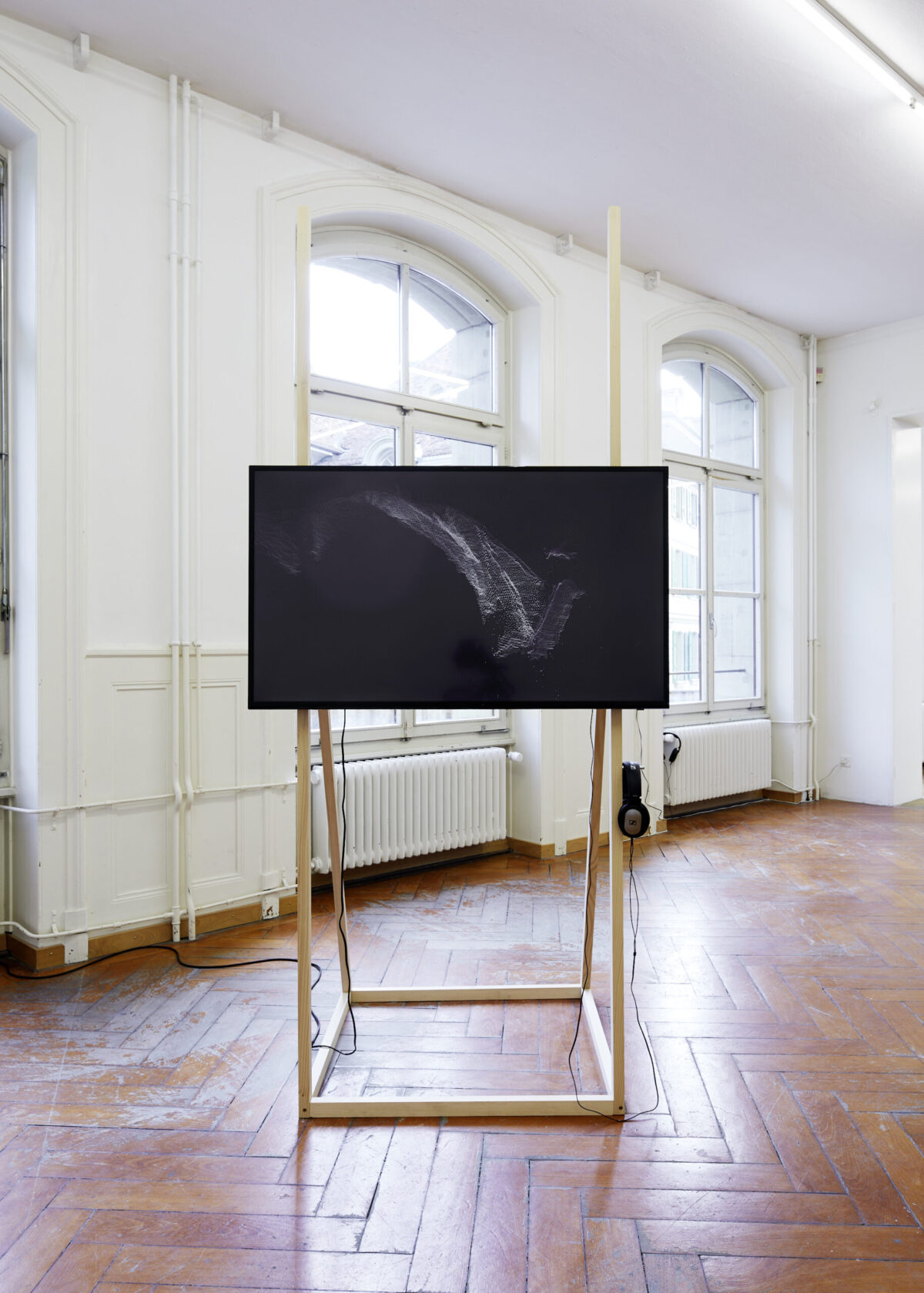 Der Begriff der Spekulation spielt auch in der Arbeit von REMY ERISMANN (*1976 in Zofingen, lebt und arbeitet in Bern) eine zentrale Rolle. In Silizium wäre geil (2016) handelt er eine Art Selbstgespräch ab, in dem er über die diversen Möglichkeiten nachdenkt, wie ein Kunstwerk materialisiert werden könnte und welche Bedeutung das mit sich ziehen würde. Erismann beschreibt den Zustand des «anything goes» – einen Moment, in dem alles denkbar ist und der scheinbar unendliche Möglichkeiten bietet, aber auch Überforderung bedeuten kann. Die nicht verfolgten Möglichkeiten werden zum Inhalt der Arbeit. Ihre akustische und visuelle Form entwickelt Erismann über eine 3D-Technologie, die aus seiner Stimme und Bewegung digitales Material erstellt.