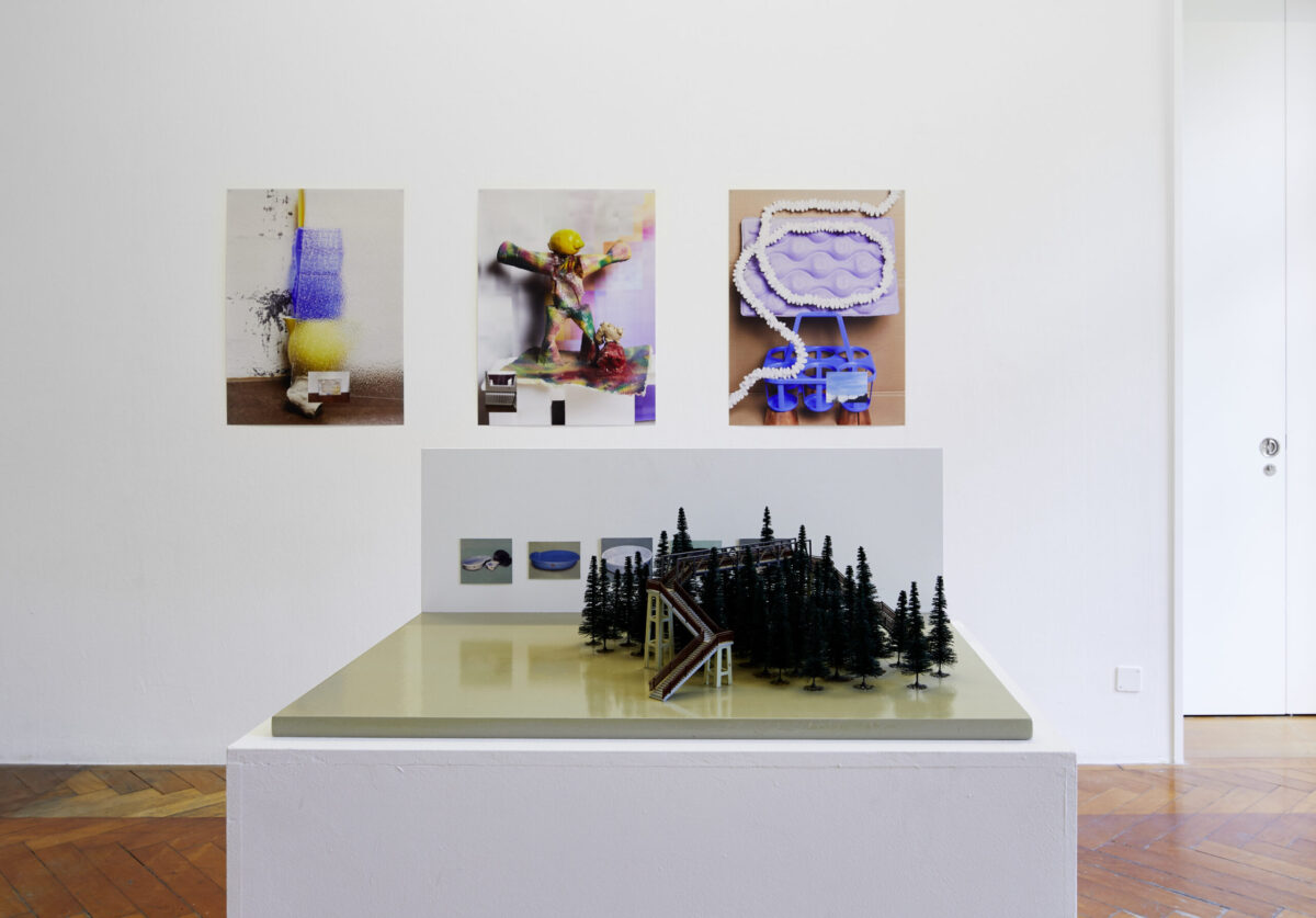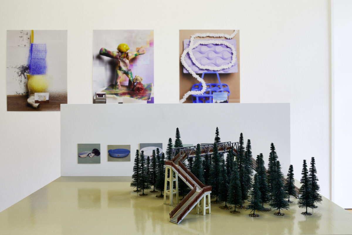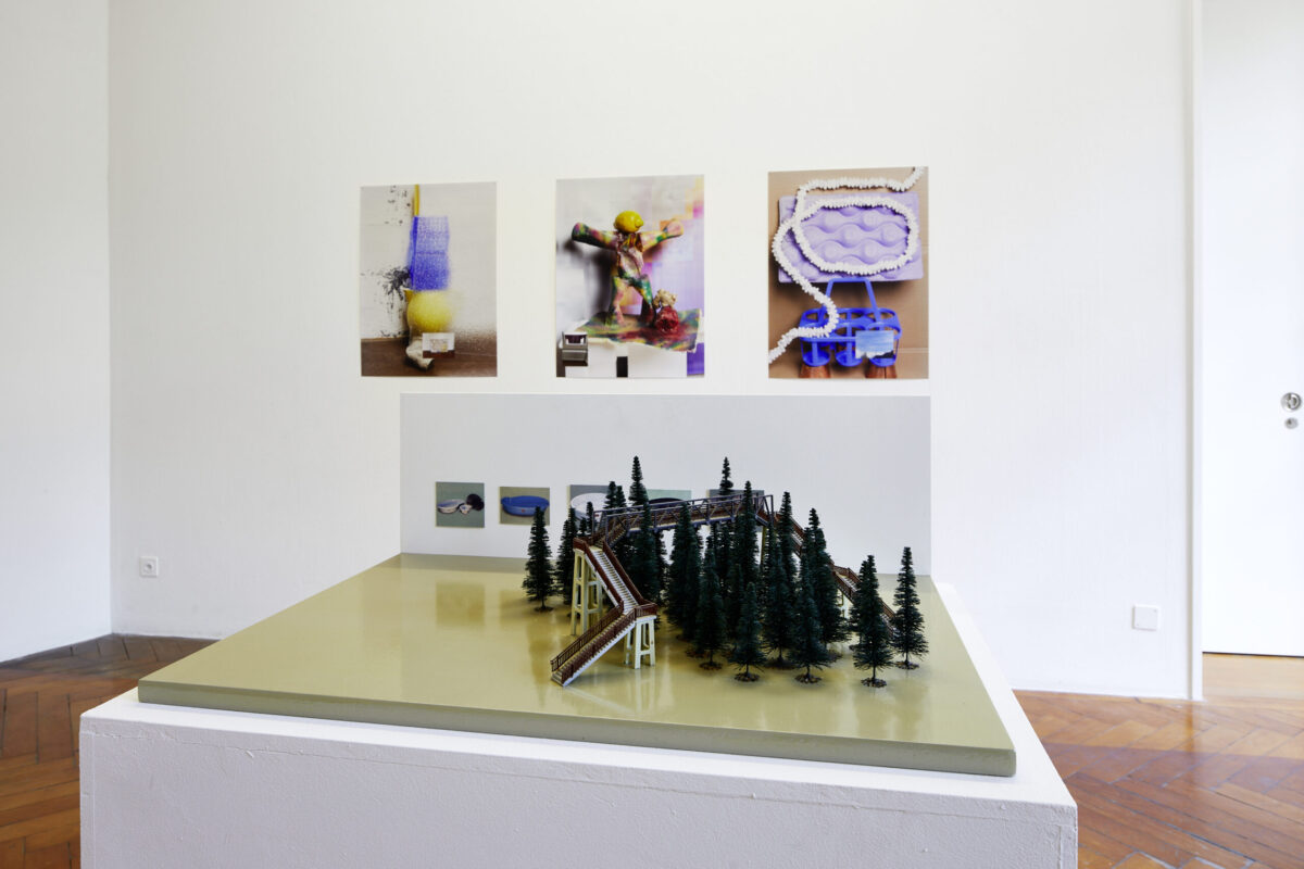 LUTZ & GUGGISBERG (Andres Lutz *1968 in Wettingen / Anders Guggisberg *1966 in Biel, leben und arbeiten in Zürich) verschieben ihr Exponat auf die Ebene eines Modells. In der Arbeit An apple a day keeps the doctor away (2002) platzieren sie in einem Miniatur-Ausstellungsraum mehrere Bilder und eine Skulptur in Form eines überbrückten Waldabschnitts. Die Natur als sinnliches und erholsames Erlebnis äussert sich als grosse Idee, die im Kleinen realisiert ist. In ironischer Weise amüsiert sich die Arbeit dabei über die Künstlichkeit und Ereignislosigkeit von Kunst und Kunsträumen.